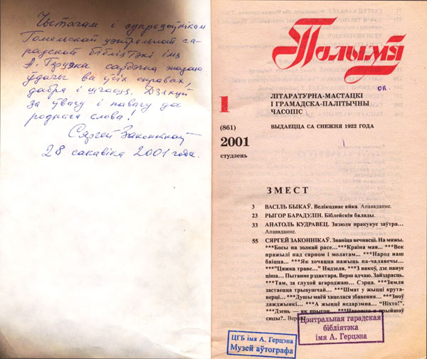 С 1986 по2002 год – главный редактор журнала «Полымя».