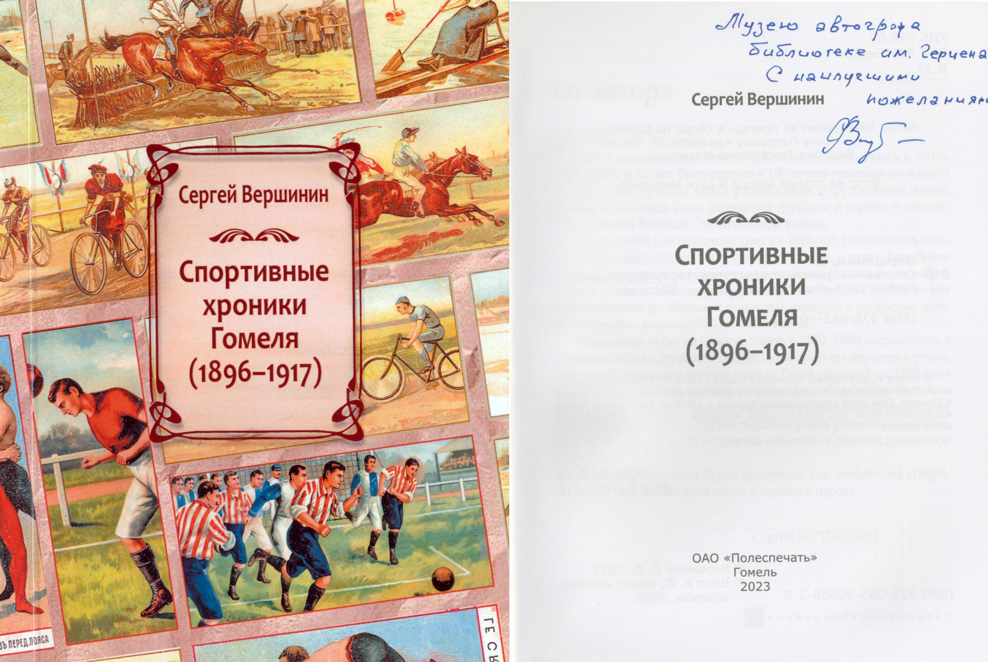 Наиболее известный труд юбиляра, дело всей жизни, как отмечает сам Сергей Вершинин — многотомное издание, посвященное 100-летию гомельского футбола. Первая часть серии под названием «Мяч над Сожем» вышла в 2011 году и охватывала период развития футбола в городе и области с 1910 по 1945 годы. Вторая часть состоит из двух книг: одна из них повествует о футбольных перипетиях на Гомельщине в период с 1946 по 1958 годы, другая — с 1959 по 1991 годы. Последняя, третья часть, также состоит из двух книг и подводит итоги выступления команды с берегов Сожа в национальных чемпионатах с 1992 по 2015 годы.