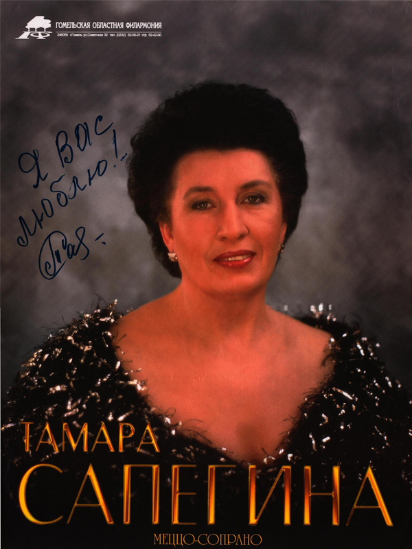 Репертуар Тамары Сапегиной включает классические вокальные произведения русских и зарубежных композиторов, старинные русские романсы, белорусские и русские народные песни. Разработаны программы по произведениям С.Рахманинова, Дж.Бизе, Н.Римского-Корсакова, Г.Генделя, И.Баха, Дж.Россини.