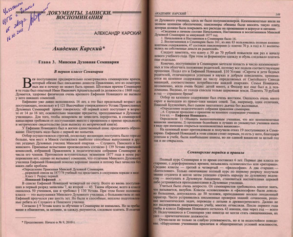 Несколько лет собирает и систематизирует исторические материалы об академике Карском. До этого его мать – внучка Ефима Федоровича, филолог по образованию – занималась сохранением и изучением архивов. Она несколько раз участвовала в Карских чтениях в Гродно. Была переводчицей с чешского и словацкого языков, работала в словарном отделе Института языкознания.