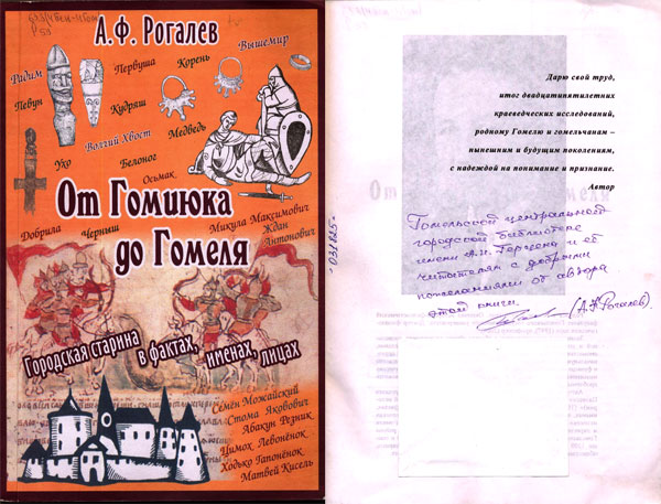 Гомельской центральной городской библиотеке имени А.И. Герцена и ее читателям от автора этой книги. (А.Ф. Рогалев).