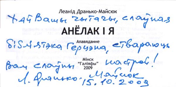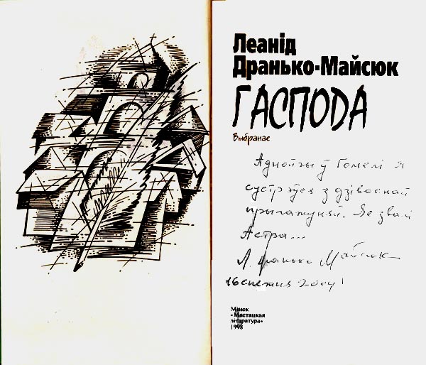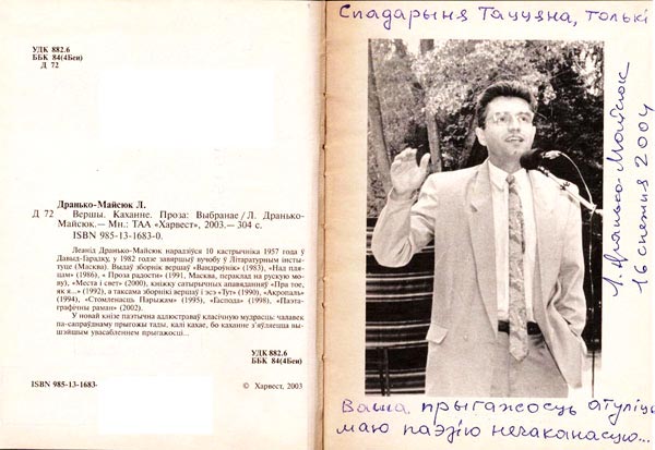 Спадарыня Таццяна, толькі ваша прыгажосць атуліць маю паэзію нечаканасцю. Л. Дранько-Майсюк. 16 снежня 2004