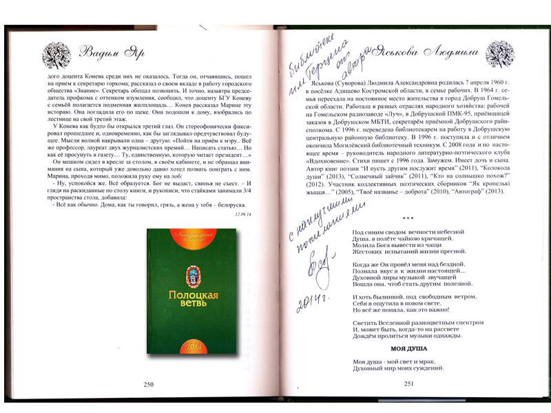 Библиотеке им. Герцена от автора с наилучшими пожеланиями. 2014 г.