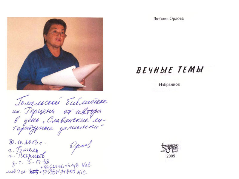 Гомельской библиотеке им. Герцена от автора с надеждой на сотрудничество. 30.10.2013 г. г. Гомель г. Петриков, д.т. 5-17-38, моб. т.+375 336171709 мтс, +375299613148 velcom.