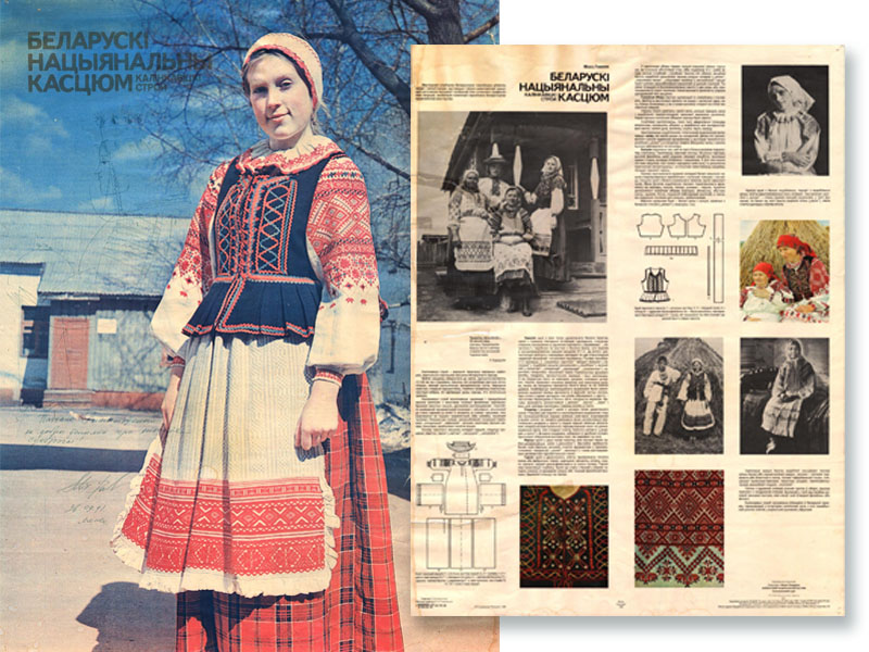 Беларускі нацыянальны касцюм. Калінкавіцкі строй [Выяўленчы матэрыял]: [плакат] / Міхась Раманюк. – Мінск : Полымя, 1989. – 1 л.: тэкст