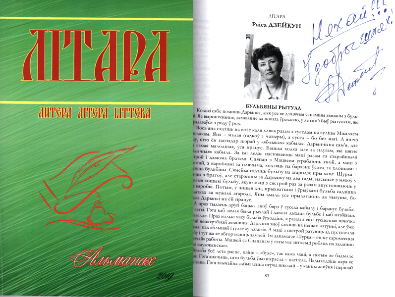 Раиса Дейкун подарила свою книгк с автографом во время «Дня белорусской письменности» в г.Добруше в 2022 году.