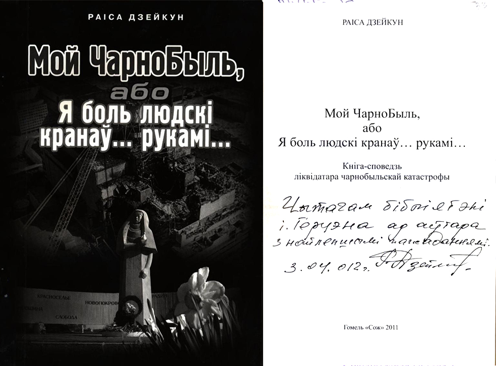 Дзейкун, Р. В. Мой ЧарноБыль, або Я боль людскі кранаў... рукамі...: кніга-споведзь ліквідатара чарнобыльскай катастрофы / Раіса Дзейкун. – Гомель : Сож, 2011. – 80 с., [7] л. іл.