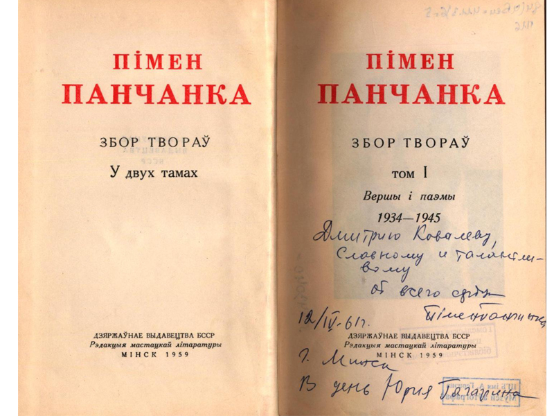 Панченко Пимен Емельянович (родился 23.08.1917, г. Таллин, Эстония – умер 02.04.1995, Минск) – белорусский поэт, переводчик, публицист, редактор. Член СП СССР (1938). Народный поэт БССР (1973). Почетный член Национальной академии наук Беларуси (1994). Участник Великой Отечественной войны.