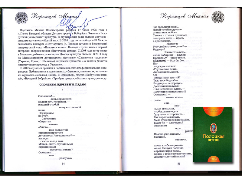 Ворожцов Михаил Владимирович. Родился 17 июля 1978 года в г. Почеп Брянской области. Закончил Белорусский университет культуры. В студенческие года является руководителем арт-салона «Новый век». В 2005 после победы в 3-м Межрегиональном конкурсе «Поэт-артист» (г. Полоцк) вступил в Белорусский литературный союз «Полоцкая ветвь». С 2008 года автор живет в Могилеве, работает режиссером Дворца культуры области. В 2011 году на Международном литературном фестивале «Славянские традиции» (Украина) награжден грамотой «За вклад в развитие литературного процесса в Украине».