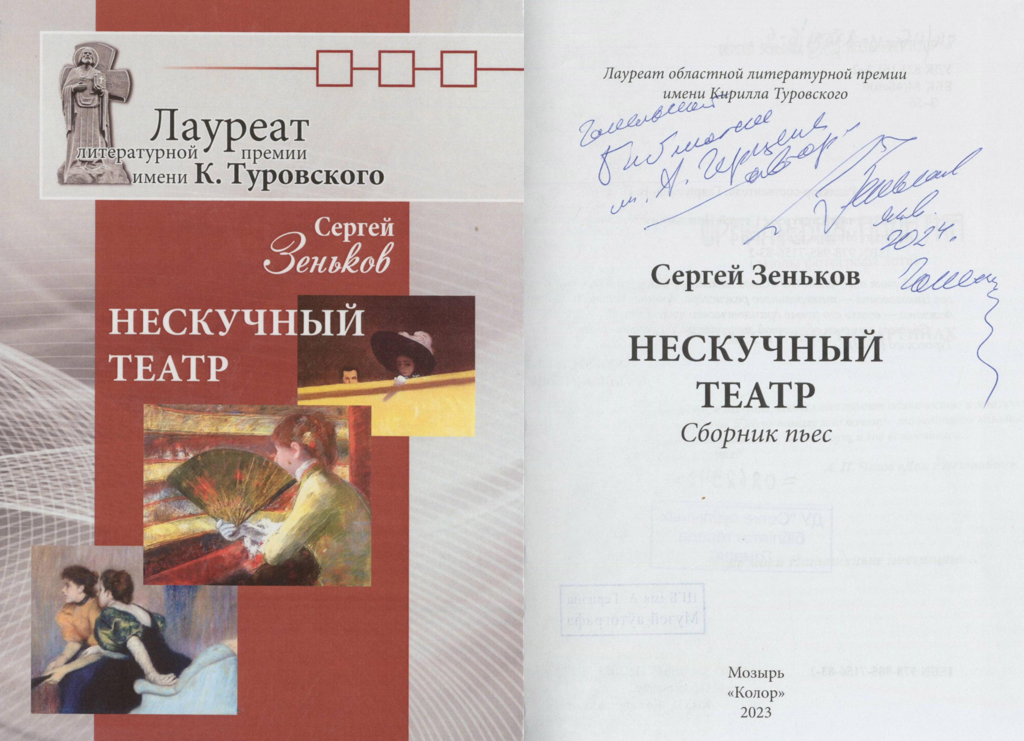 По итогам 2023 года С.Н. Зеньков стал лауреатом Литературной премии имени К. Туровского (номинация «Драматургия», сборник пьес «Нескучный театр»).