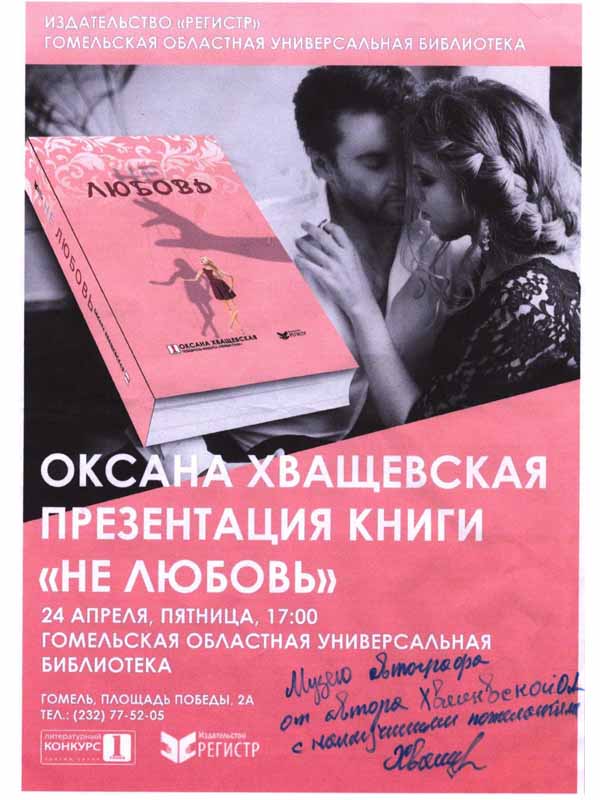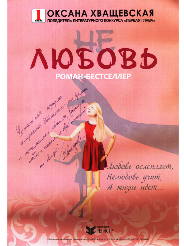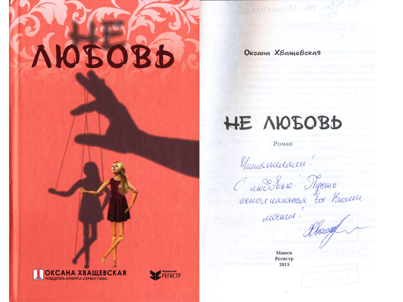 Оксана Хващевская стала победителем второго сезона литературного конкурса для начинающих авторов «Первая глава», который с 2012 года проводит минское издательство «Регистр». Она участвовала и в первом сезоне, но тогда члены жюри нашли недочеты в ее работе. Через год Оксана прислала значительно доработанный текст, который стал фаворитом не только жюри, но и читательского голосования. Первоначальное название книги О. Хващевской «Не любовь» – «В дымке лет».