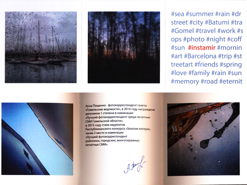 Анна Пащенко – фотокорреспондент газеты «Гомельские ведомости». Фотографией начала увлекаться во время учёбы в Гомельском государственном университете им. Ф. Скорины.