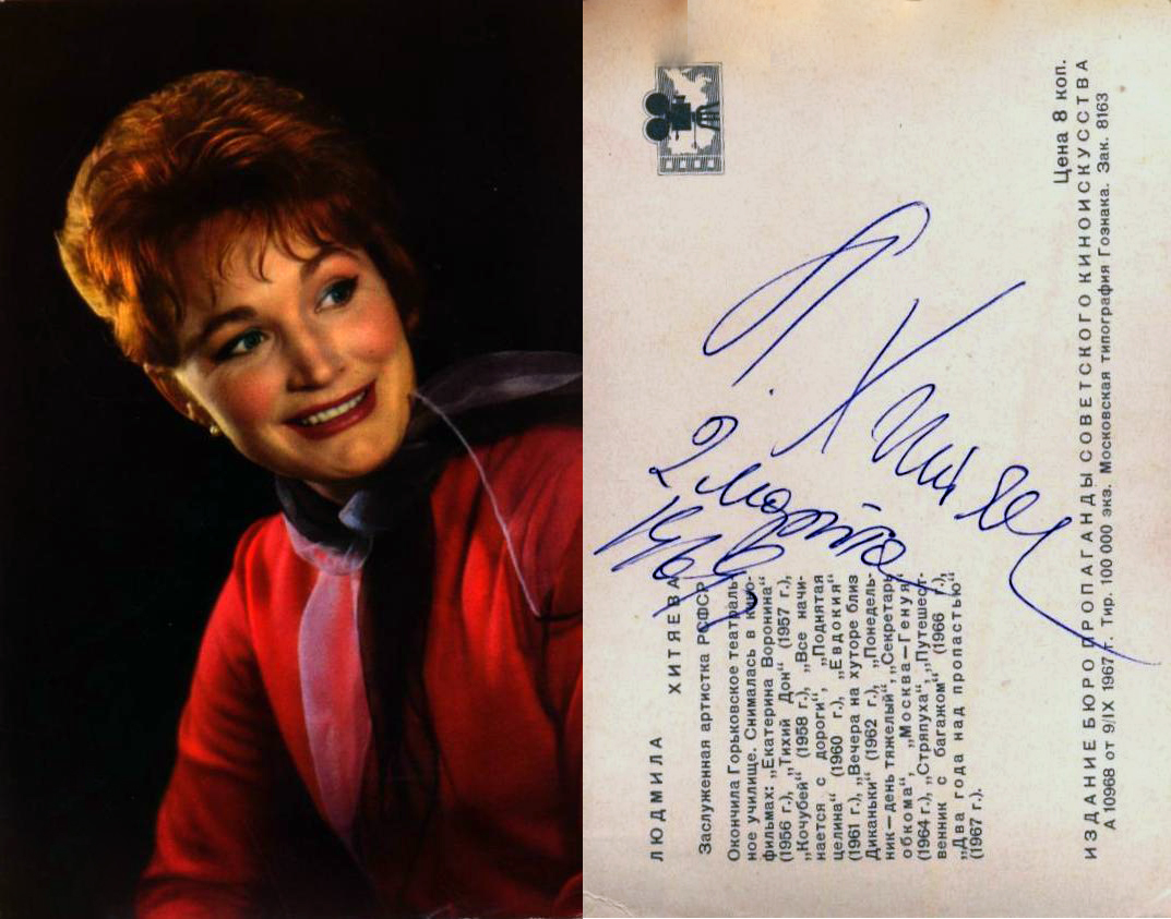 Леночке! На память Юрий Гуляев Москва 1968г.
