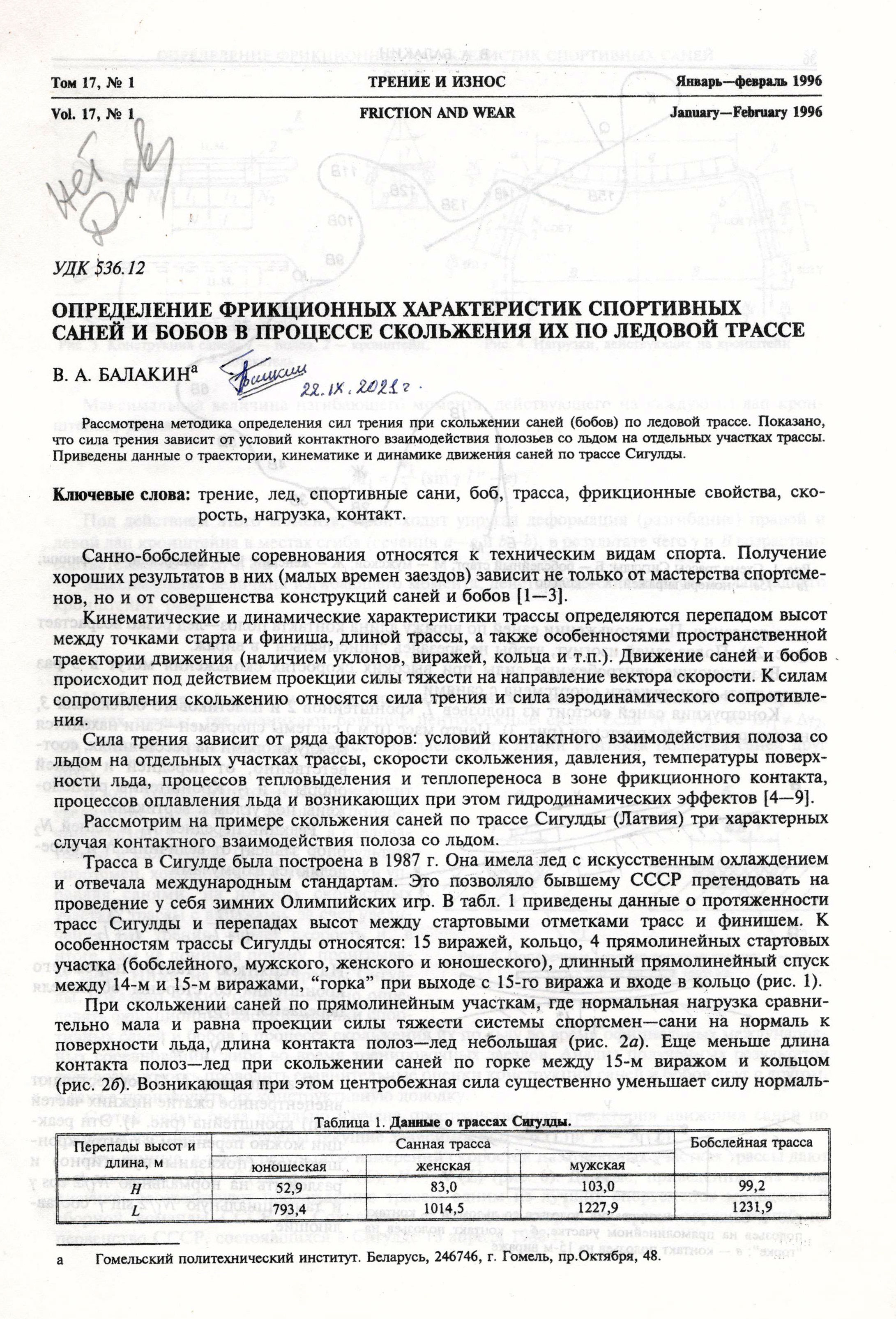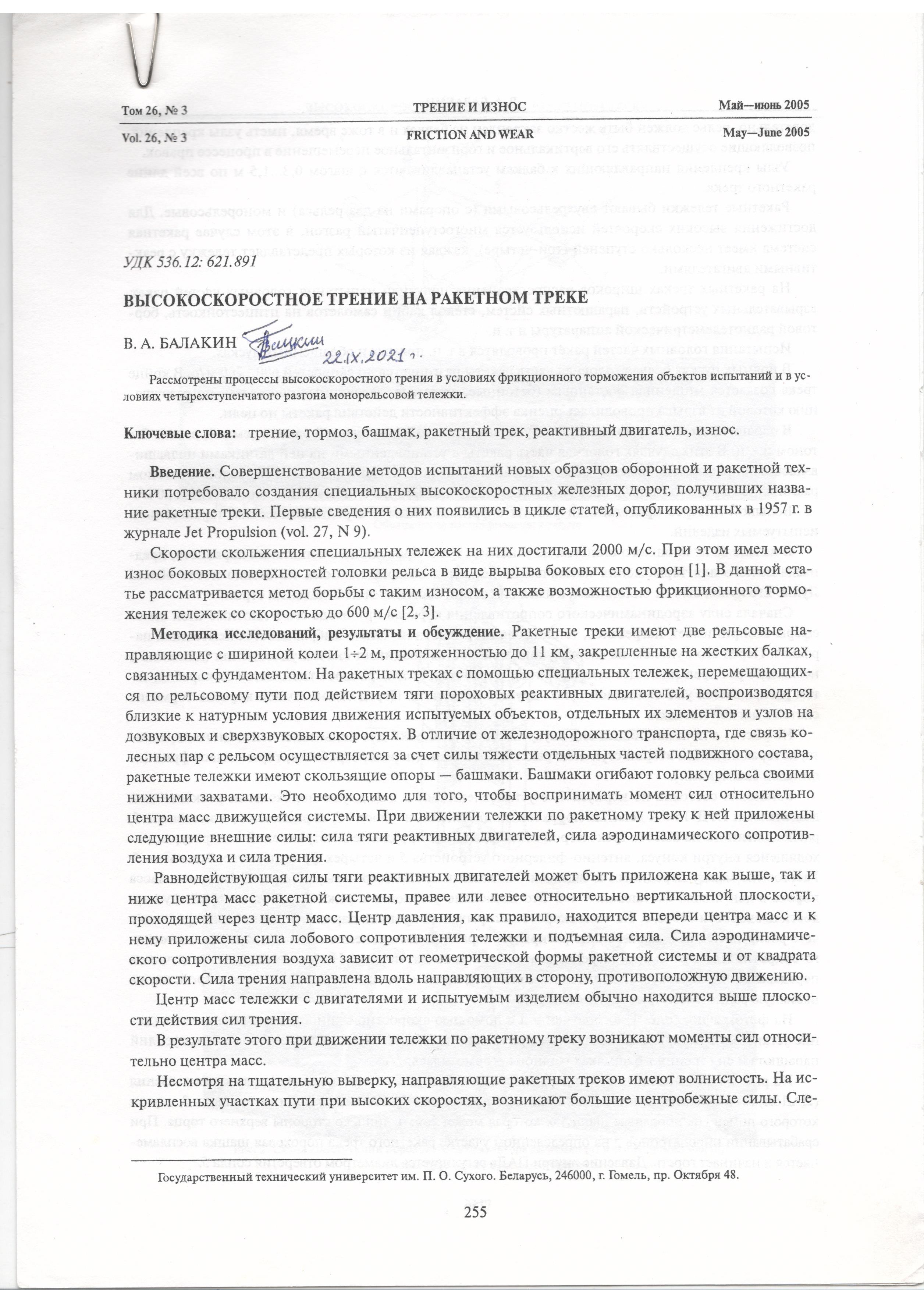 После окончания МВТУ им. Н. Э. Баумана с 1960 по 1970 гг. В.А. Балакин жил в г. Красноармейске и работал в научно-исследовательском институте оборонного профиля в Пушкинском районе Московской области, руководя испытаниями на ракетном треке и в последующей долгой научной жизни занимался проблемами высокоскоростного трения скольжения.