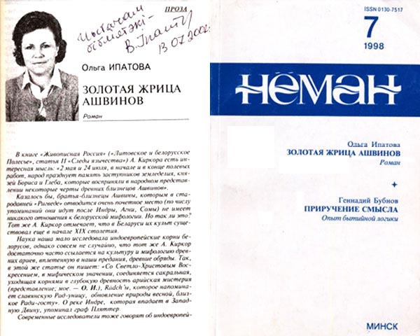 С 1998 по 2001 Ольга Ипатова была заместителем председателя, а с 2001 по 2002 год — председателем Союза белорусских писателей.