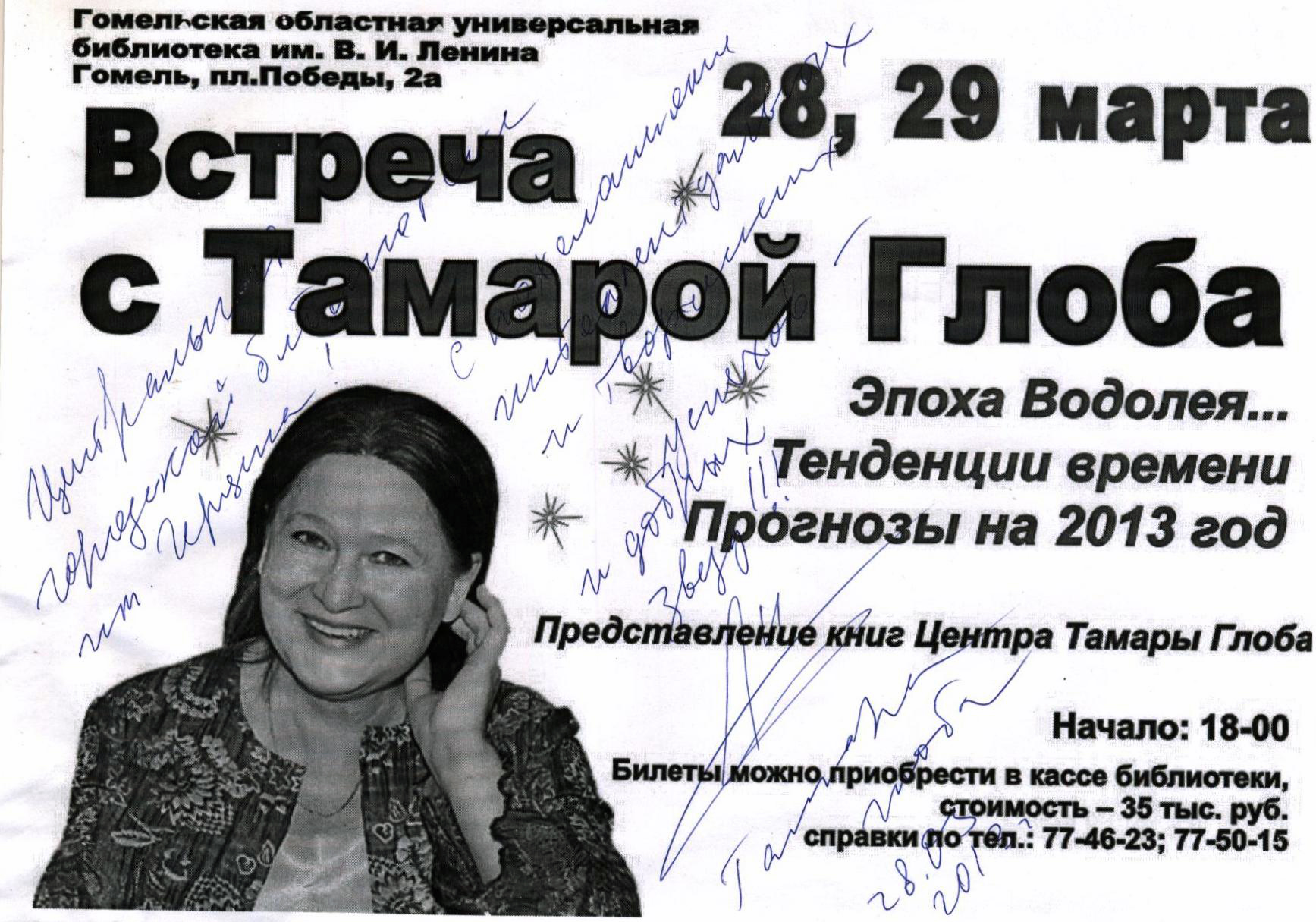 Тамара Глоба - автор многочисленных прогнозов и статей в периодической печати, автор и соавтор ряда книг по астрологии, среди них: