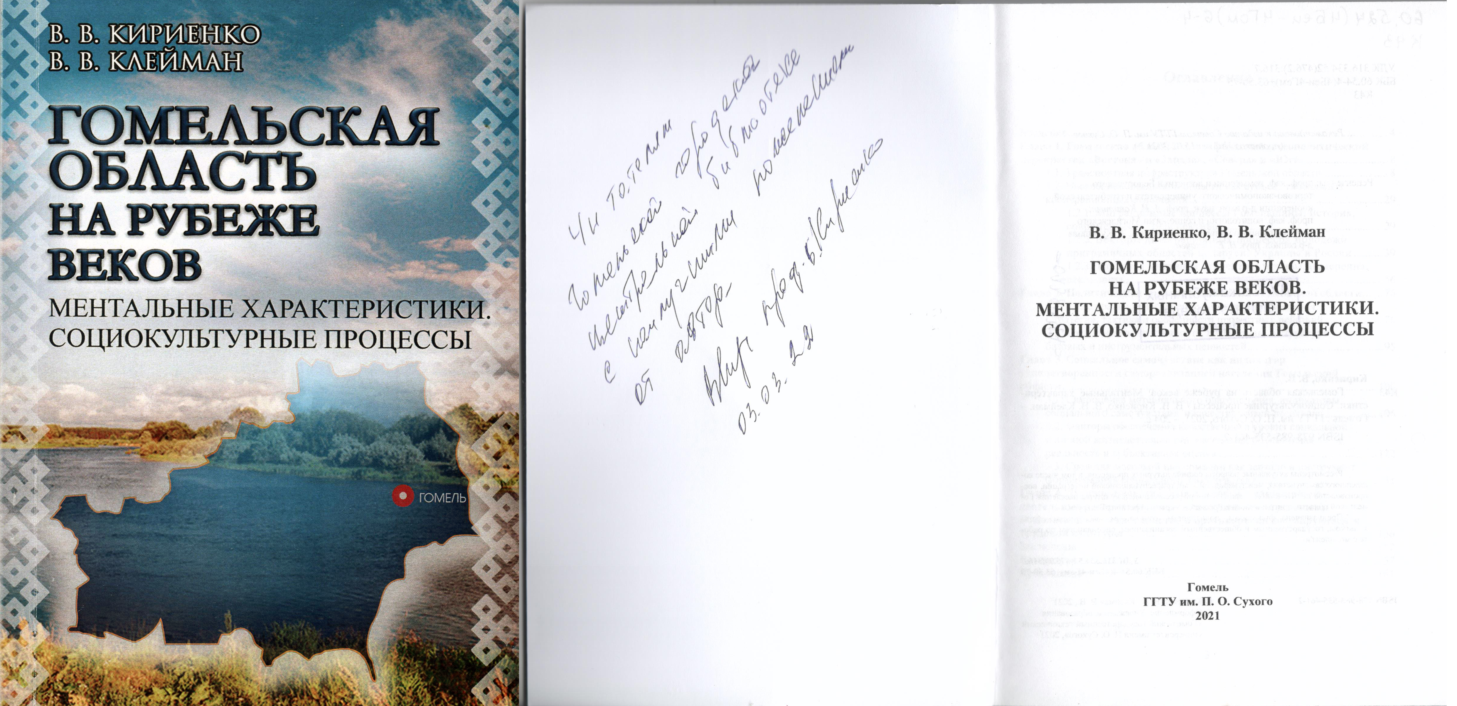 Кириенко Виктор Васильевич – доцент, доктор социологических наук (2007), профессор (2009) кафедры социально-гуманитарных и правовых дисциплин Гомельского государственного технического университета им. П. О. Сухого; автор более 180 научных работ, в том числе индивидуальных монографий «Менталитет современных белорусов» (2006); «Белорусская ментальность: истоки, современность, перспективы» (2009); коллективной монографии «Студенческая молодежь: ментальные особенности, идентичность, образ жизни» (2015). Неоднократно признавался лучшим автором журнала «Беларуская думка» (2003, 2005), является членом правления Белорусской социологической ассоциации, а также председателем гомельского областного отделения республиканского государственно-общественного объединения «Белорусское общество “Знание”». Научные интересы: менталитет славян и интеграционные процессы; взаимодействие политических, экономических и социокультурных компонентов в общественном прогрессе.