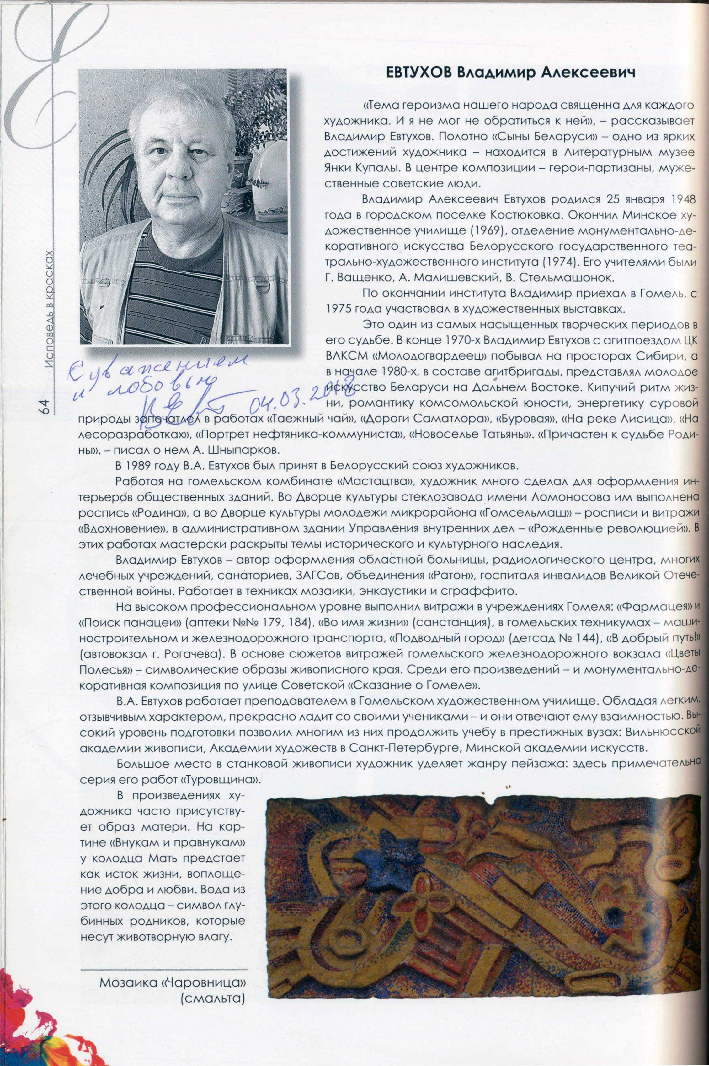 Евтухов Владимир Алексеевич – гомельский художник-монументалист. Член Белорусского союза художников с 1989 года.