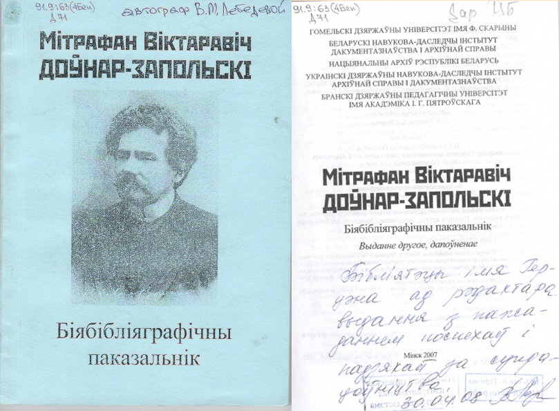 В. М. Лебедева выступила ответственным редактором «Истории Белоруссии» М.В. Довнар-Запольского; I–VIII сборников «Доўнараўскія чытанні»; сборника научных статей и документов «Даследчык гістрыі трох народаў: М.В. Доўнар-Запольскі» (2000); библиографического указателя «Мітрафан Віктаравіч Доўнар-Запольскі» (2007), над составлением которого трудились ученые Беларуси, Украины и России. Выступила составителем книги избранных работ М.В. Довнар-Запольского «Доўнар-Запольскі М. В. Выбранае» (2017). Итогом ее работы стала книга «Мітрафан Доўнар-Запольскі (1868–1934): Асоба ў дакументах і ўспамінах», вышедшая в свет в 2020 году.
