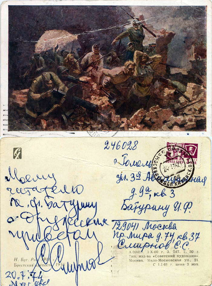 Сергей Сергеевич Смирнов (13[26] сентября 1915, Петроград, Российская империя — 22 марта 1976, Москва, СССР) – русский советский писатель, прозаик, драматург, публицист, журналист, редактор. Общественный деятель, член Советского комитета ветеранов войны. Член Союза писателей СССР и его секретарь. Автор документальных книг, очерков, пьес и киносценариев о неизвестных героях Великой Отечественной войны, в том числе «Брестская крепость». Много лет вел на ТВ популярную передачу телеальманах «Подвиг».