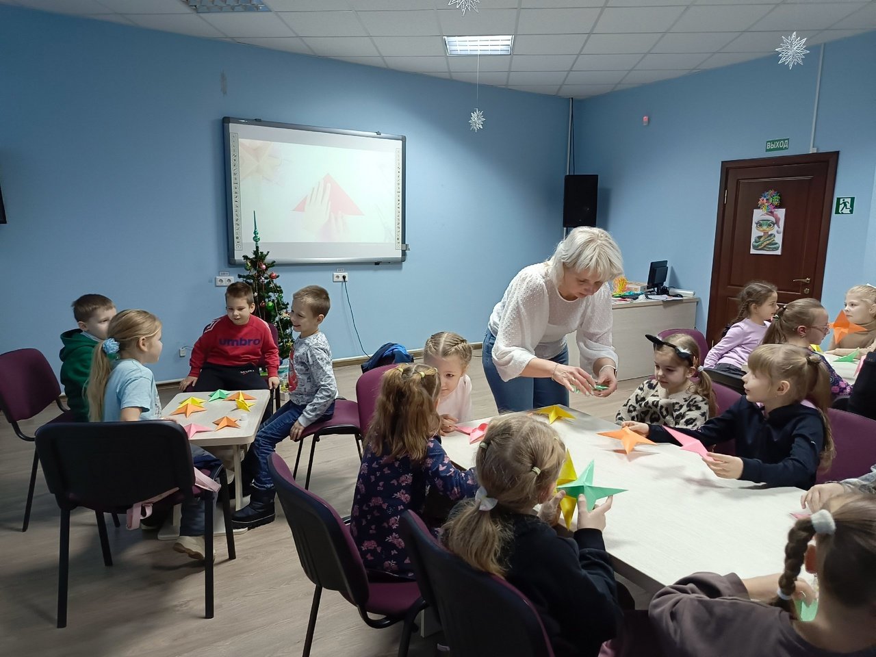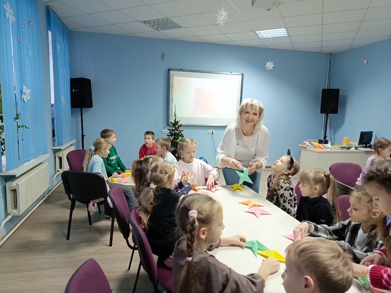 Во время мероприятия учащиеся из 1 «А», 1 «Б», 2 «А» классов ГУО «Средняя школа № 53 г. Гомеля» старательно создавали Вифлеемскую звезду, как и новый читатель библиотеки, который узнал о мастер-классе через городской интернет-журнал «БЕЛКА».
