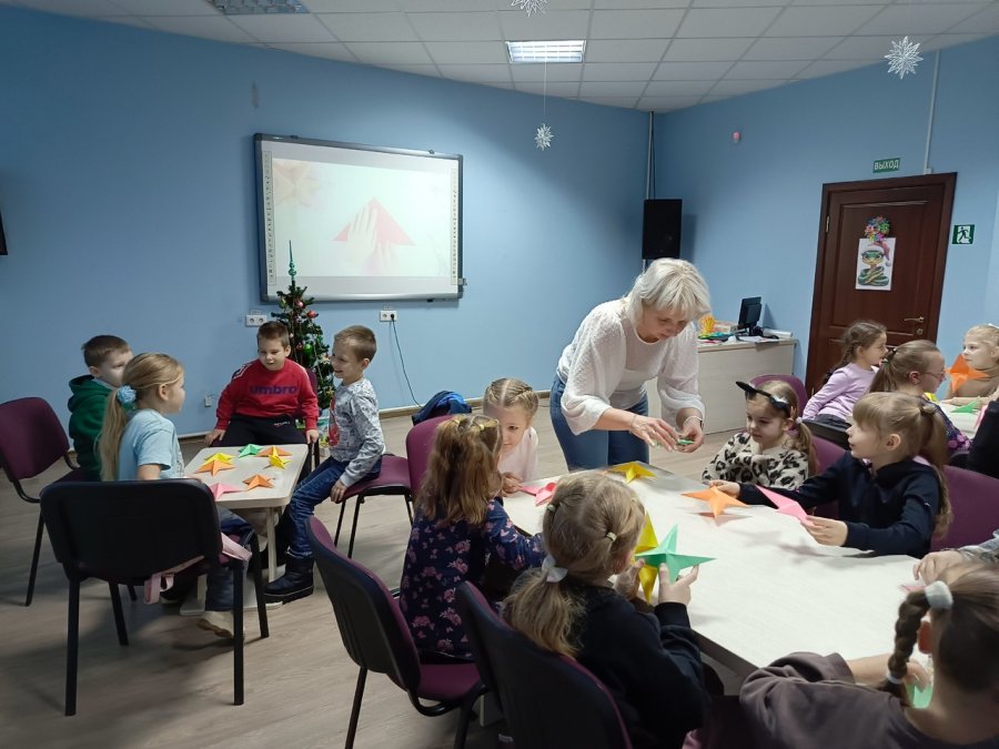 Ребята выбрали цвет бумаги на своё усмотрение, представляя какой должна она быть, и под руководством библиотекаря принялись за её изготовление. Во время творческого процесса все с интересом слушали увлекательный рассказ об истории рождения традиции, легенду о необыкновенной звезде, взошедшей над Вифлеемом.