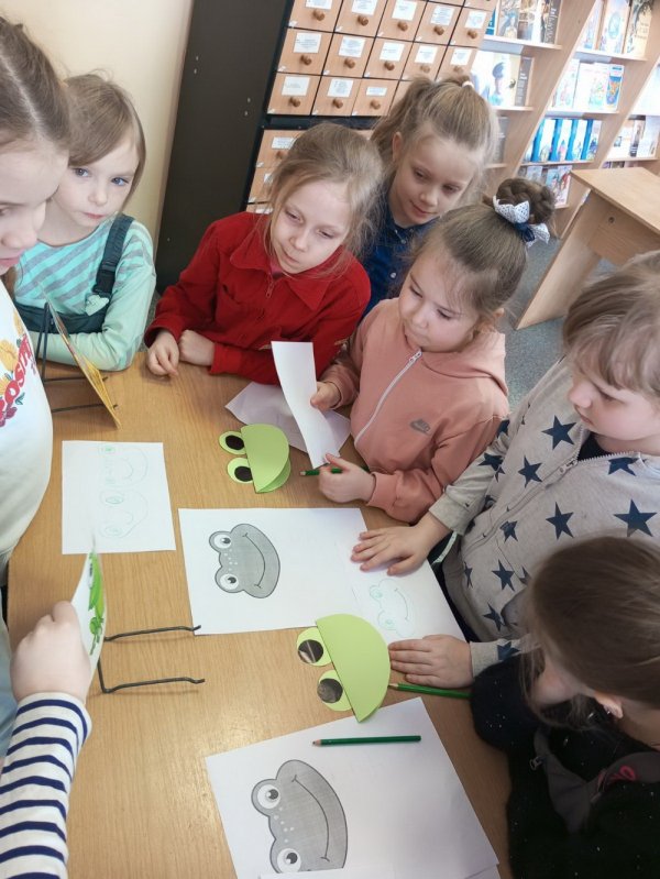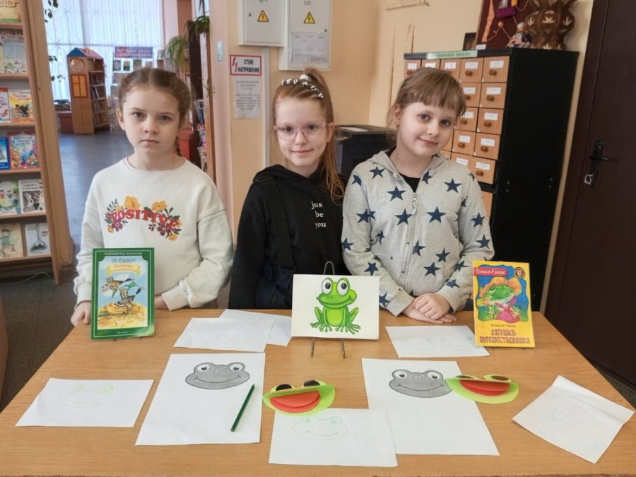 Библиотекарь познакомила детей с биографией писателя и прочла ребятам сказку «Лягушка-путешественница», где автор знакомит с обыкновенными лягушачьими радостями. Вместе с детьми обсудили качества, которые присущи сказочной лягушке: болтливость, хвастовство, находчивость, выдумка и др. Затем ребята ответили на вопросы викторины по сказке, вспомнили в каких ещё рассказах и сказках упоминаются лягушки. В игровой форме рассказали отрывок из сказки, поучаствовали в танцевальном конкурсе «Танец лягушат» и в художественном задании «Нарисуй и собери лягушку». В завершение мероприятия дети посмотрели весёлый белорусский мультфильм «Квака-задавака» с замечательными песнями.