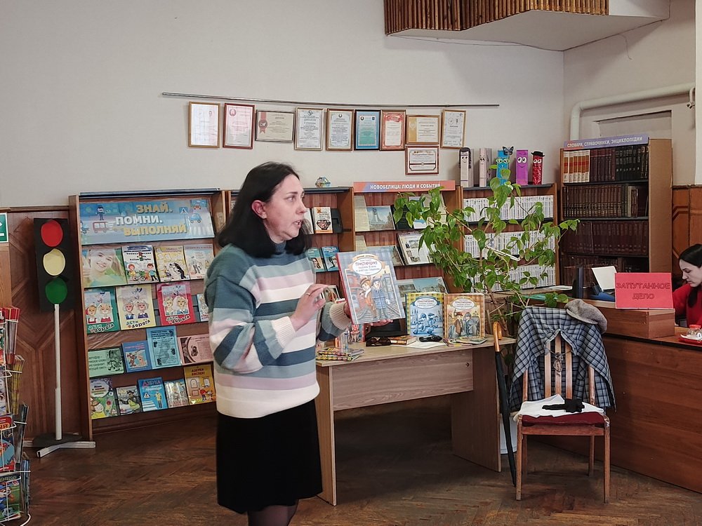 В заключении мероприятия библиотекарь предложила поближе познакомиться с книгами детективного жанра, представленными на выставке.