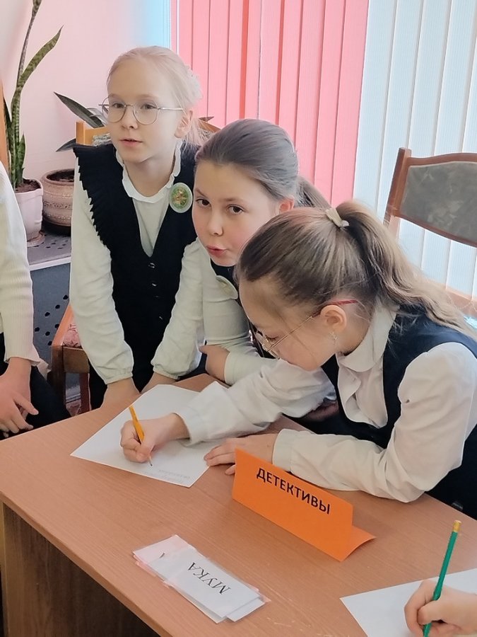 В детской библиотеке-филиале№12 им.С.Маршака в рамках библиошколы «Читайка» прошел час детективной и приключенческой литературы «Запутанное дело». В этот день учащихся 4 «В» класса ГУО «Средняя школа №2 им.Г.М.Склезнева» пригласили принять участие в работе детективного агентства «Запутанное дело».В начале мероприятия школьники узнали, что детективный жанр является одним из самых популярных жанров литературы. Детям рассказали, чем отличается детектив, от других жанров, как выстраивается композиция в классическом детективе, и кто становится его главным героем. Дети поделились своими мыслями на эту тему, вспомнили, какими качествами должен обладать хороший сыщик.