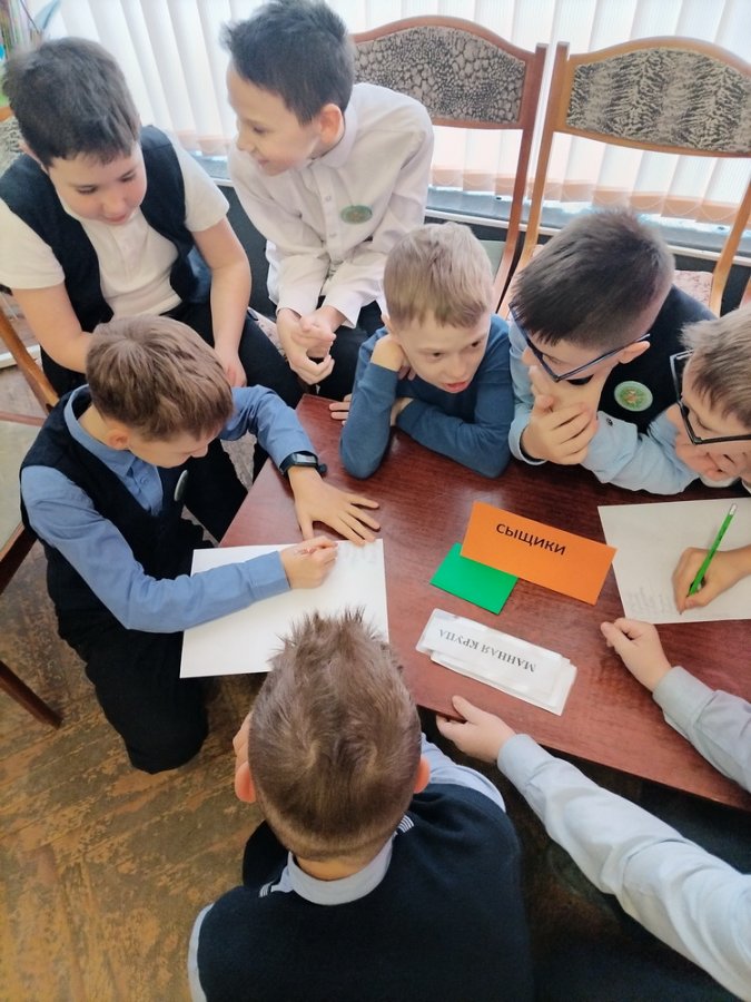 После школьникам было предложено перевоплотиться в сыщиков и попробовать свои силы в раскрытии преступлений. Для этого юным сыщикам надо было пройти ряд испытаний, которые требовали от них знания профессиональной терминологии, отличного слуха, острого зрения и хорошей памяти. Ребята проявили себя, как настоящие сыщики и со всеми заданиями справились.