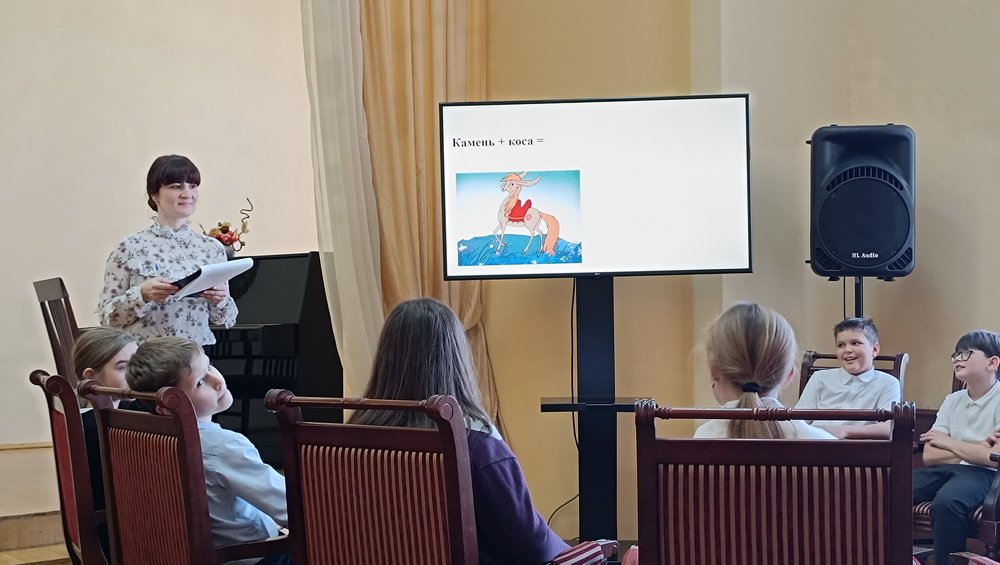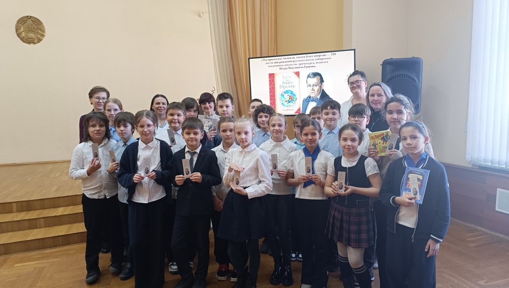 На встречу пришли учащиеся 4 «В» класса ГУО «Гимназия № 10 г. Гомеля». Ребята узнали о жизни и творчестве писателя и об истории создания сказки «Конёк-Горбунок». Посмотрели фрагмент из мультфильма, приняли участие в игре «Старинные слова», где из сказки узнавали значения не пользующихся известностью слов, продолжили пословицы в игре «В стране мудрецов».