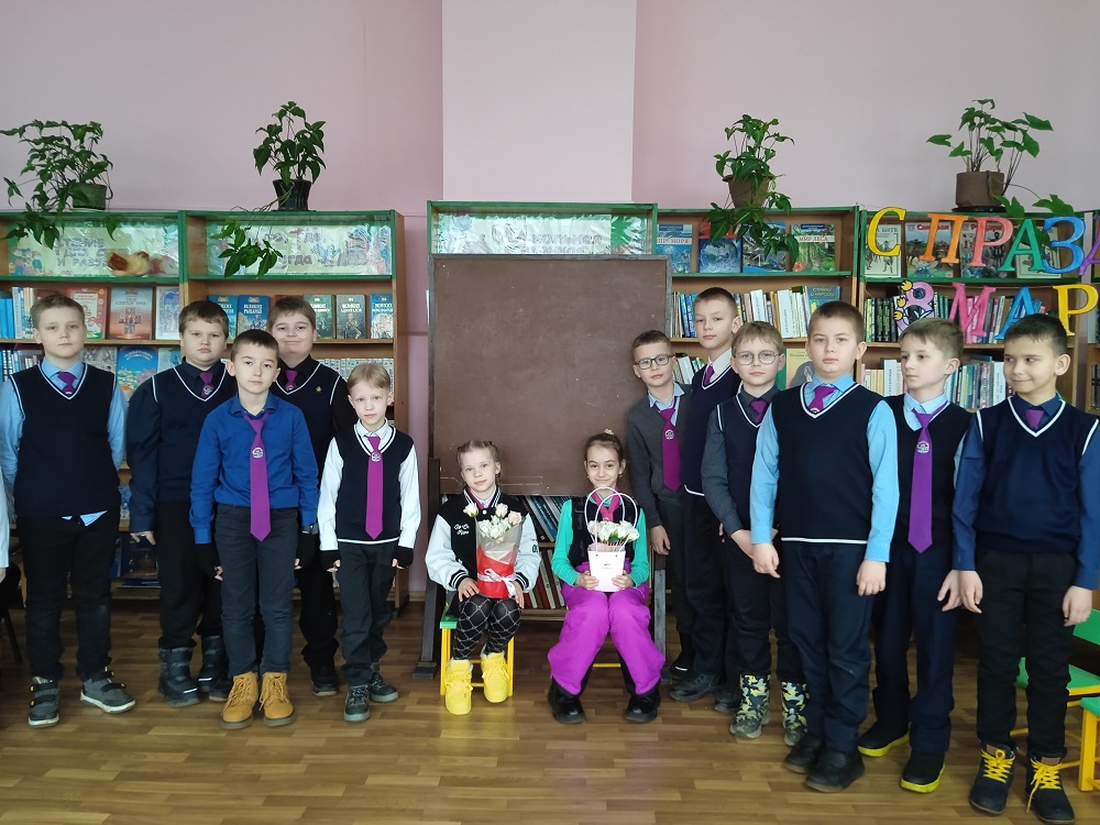 Просмотрев небольшой видеоролик «8 Марта» дети познакомились с историей праздника, приняли активное участие в конкурсах и играх. Ребята ответили на вопросы викторины «Мир цветов». В конкурсе «Праздничный букет» мальчики на скорость собирали цветы для девочек. В художественном конкурсе рисовали «пупырчатой пленкой» одуванчики. Проявили творческую фантазию в конкурсе «Парикмахер», где им предстояло сделать цветную прическу. В конкурсе «Нужные вещи» школьники собирали предметы, которые есть в любой женской сумочке. В конкурсе «Одень малыша» ребята одевали куклу на прогулку, сложность заключалась в том, что у них были связаны две руки. В конкурсе «Повяжи платок» мальчикам предстояло изловчиться и повязать платок на воздушный шарик. В эстафете «Заготовки на зиму» «закатывали» в банку овощи и банку с фруктами. В конкурсе «Веселая глажка» соревновались парами – мальчики гладили одежду, а девочки ее слаживали. Все ребята получили сладкие угощения.