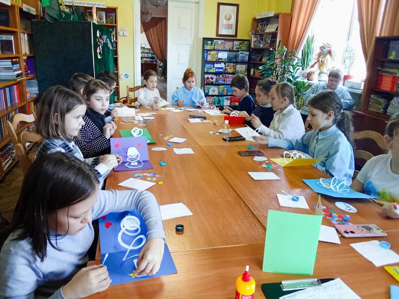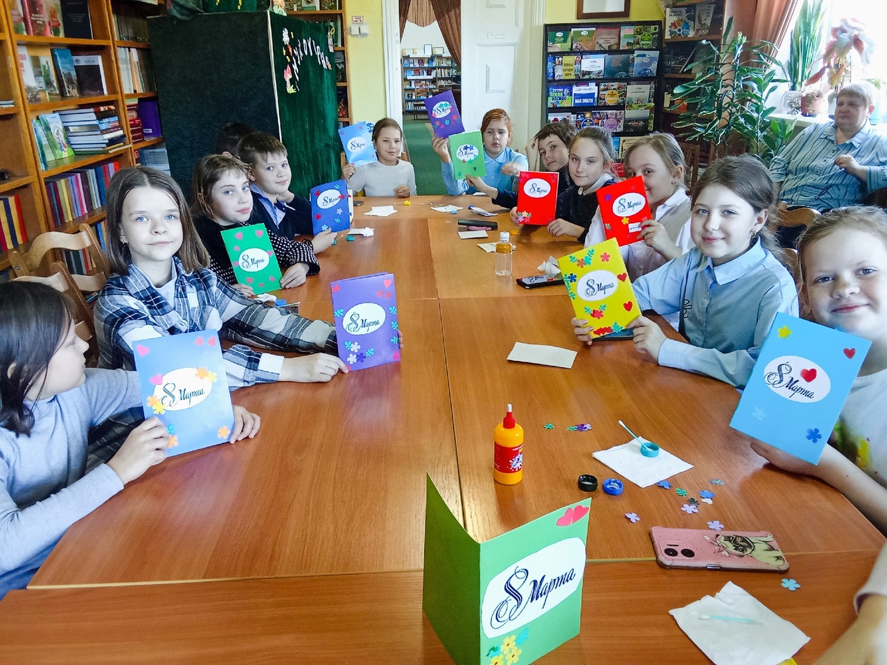 Под руководством сотрудников библиотеки дети с увлечением работали над созданием праздничной открытки из картона и цветной бумаги. Они смогли не только проявить своё мастерство, но и передать в своих творениях любовь к самым близким людям. В процессе работы над открытками ребята рассказывали о своих самых дорогих и любимых мамах и бабушках.