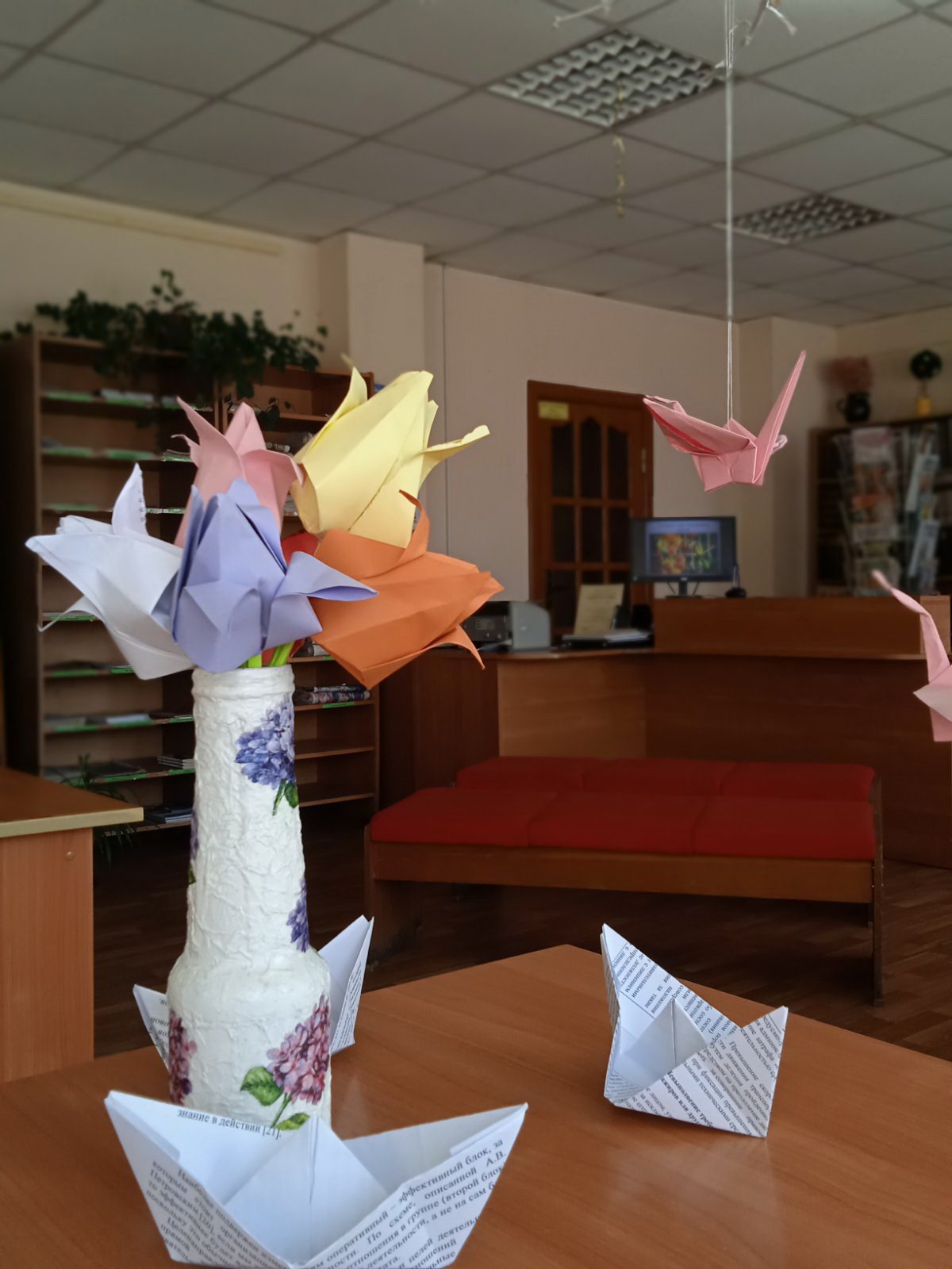 прошла познавательная беседа об искусстве оригами «Бумажные превращения». На мероприятии маленьким гостям с помощью наглядной презентации был предложен небольшой экскурс в историю древнего японского искусства под названием оригами. Ребята с интересом послушали трогательную историю о японском журавлике из бумаги, узнали почему он стал символом удачи и счастья.