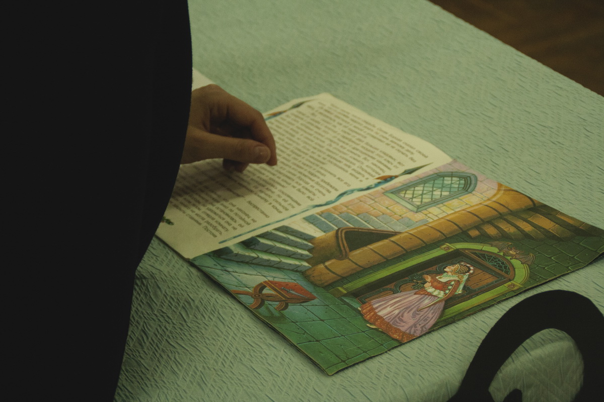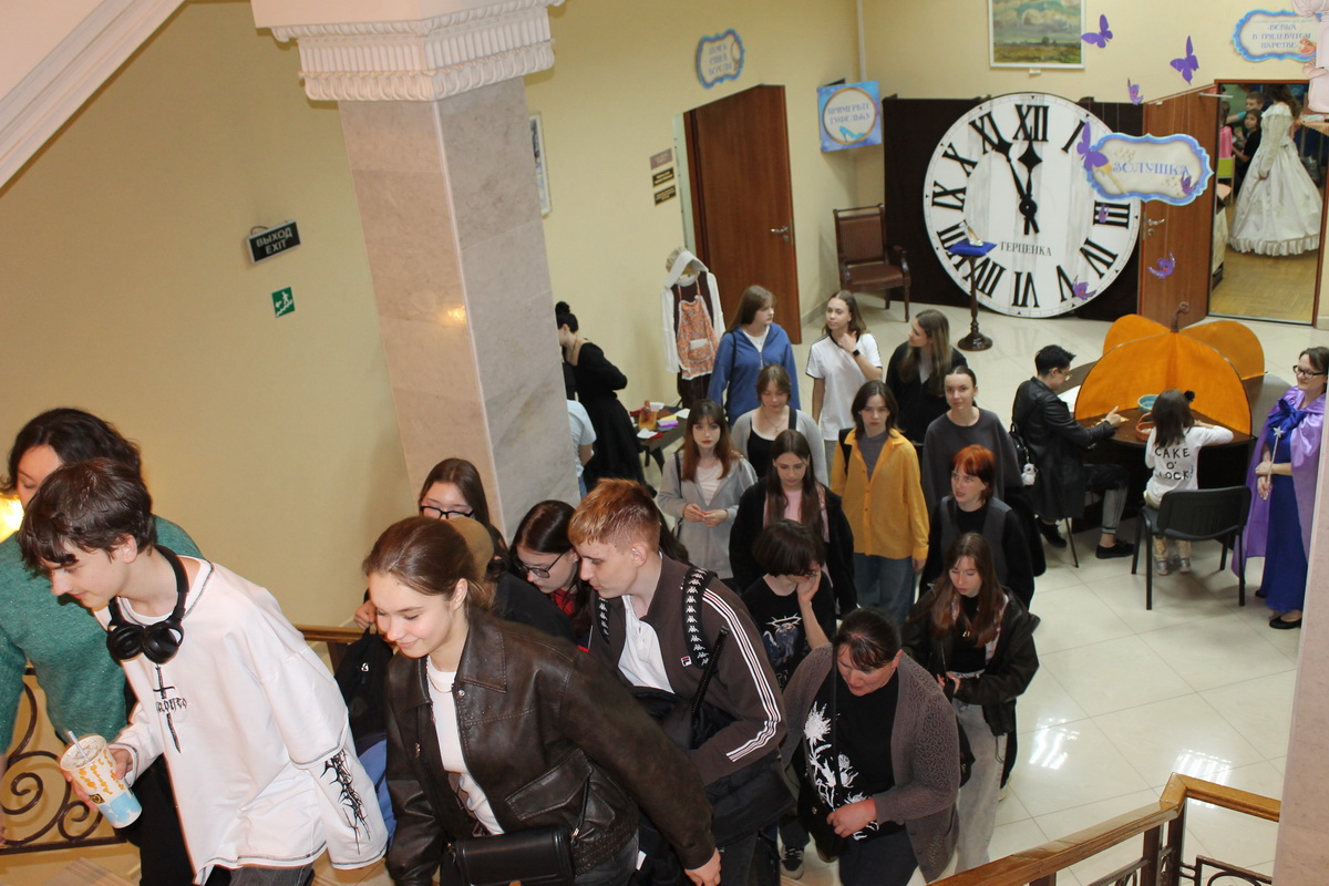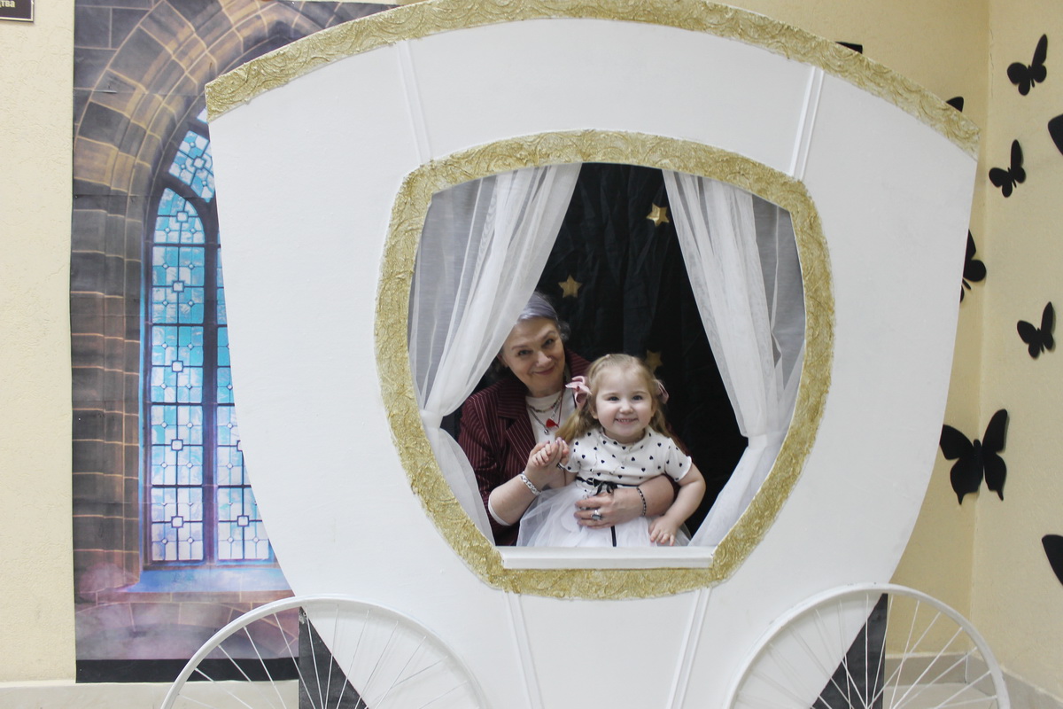 В фойе второго этажа гостей ждала Золушка с предложением примерить туфельку и сфотографироваться в карете. Рядом с тыквой Фея-крёстная предлагала поучаствовать в играх и помочь Золушке попасть на бал. Этому всячески препятствовала злая мачеха, которая требовала определить вид ткани и рассортировать крупы.
