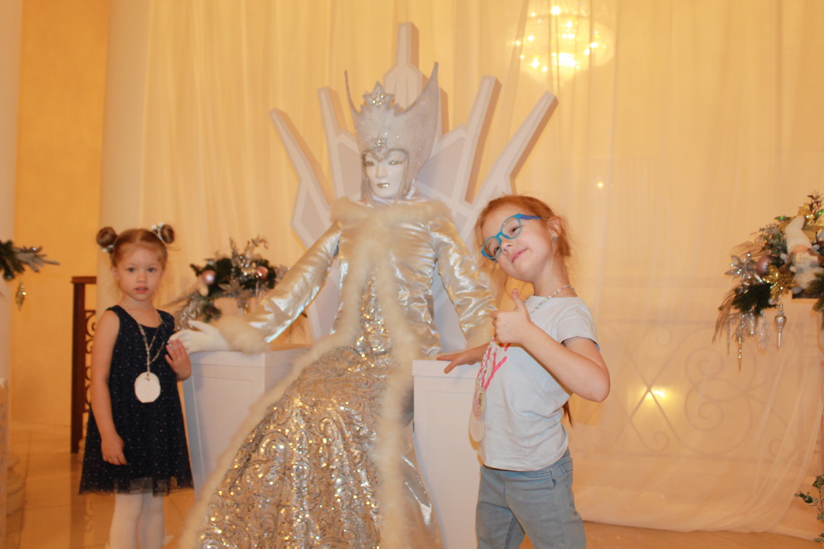 Фойе третьего этажа на несколько часов превратилось в страну вечных льдов – Лапландию. В царстве Снежной Королевы посетители складывали из льдинок слово «Вечность». Огромное количество красивых фотографий можно было сделать рядом со Снежной Королевой, сидящей на троне. Большой популярностью пользовалось и фотозона с Гердой и оленями.