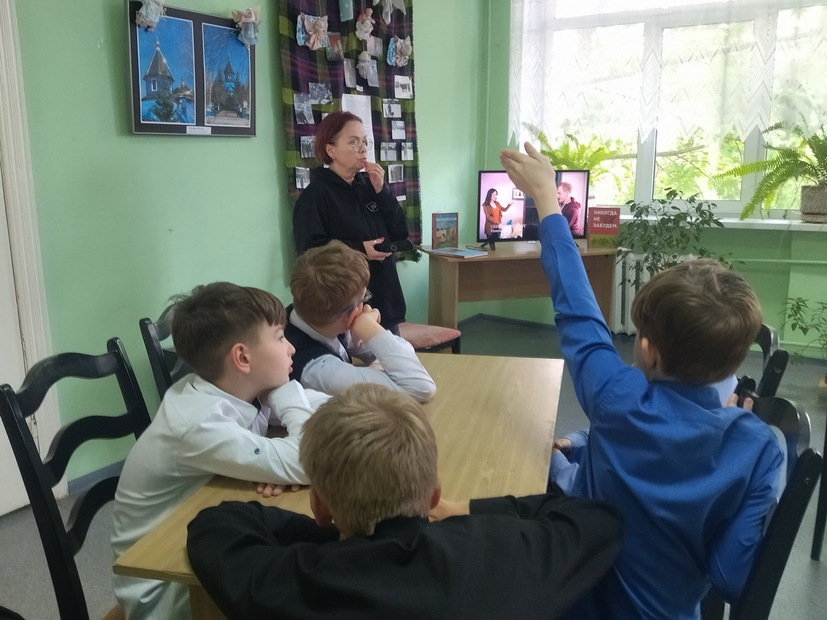Учащиеся послушали рассказ Ивана Серкова «Хорошо, что я Иван» и обсудили с библиотекарем незнакомые слова и понятия.
