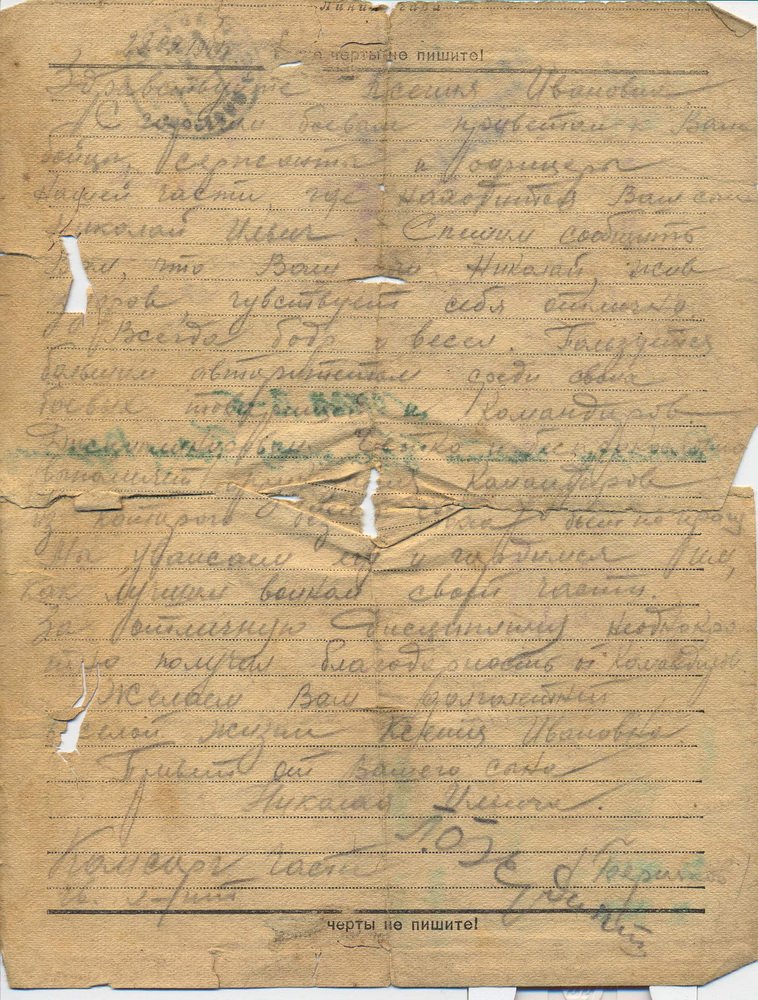 "Я не знал своего дедушку – он умер, когда мне было всего полгода. Но память о нем и его службе Родине хранится в нашей семье. К сожалению, переписка с фронта была утеряна. Все, что сейчас осталось в память о днях войны – короткая автобиография деда, письмо-благодарность, направленная матери бойца (моей прабабушке) от сослуживцев и фотография дедушки в военной форме с орденом на груди.