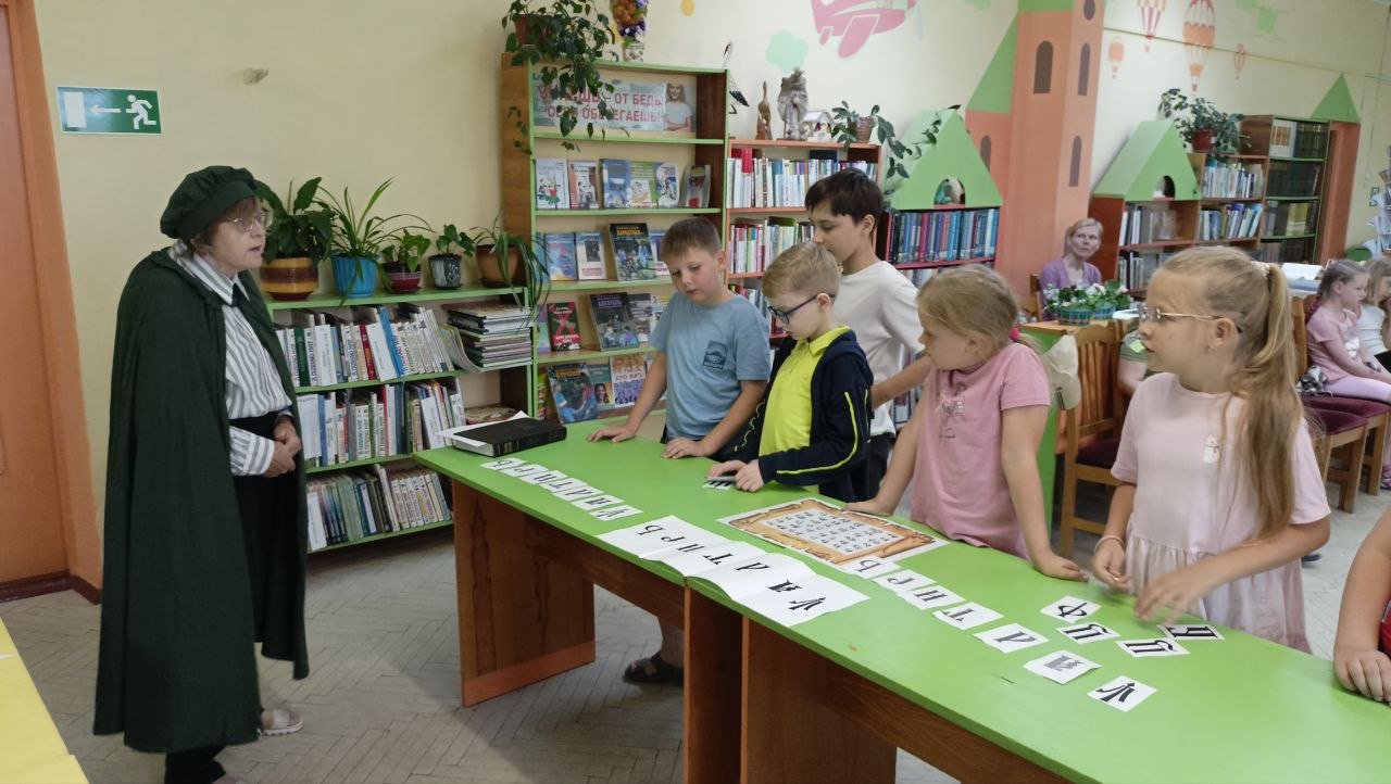 Сотрудники библиотеки напомнили ребятам о ярких страницах истории нашего государства. Участники мероприятия вспомнили исторических личностей, которыми гордятся современные белорусы. Библиотекарь в образе Франциска Скорины познакомила школьников со старославянской азбукой. Рассмотрев, как выглядели буквы старославянского алфавита и узнав, почему некоторых из них нет в современном алфавите, юные посетители библиотеки собрали название первой печатной книги, отгадали загадки, перевели слова со старославянского языка на современный и выполнили другие задания.