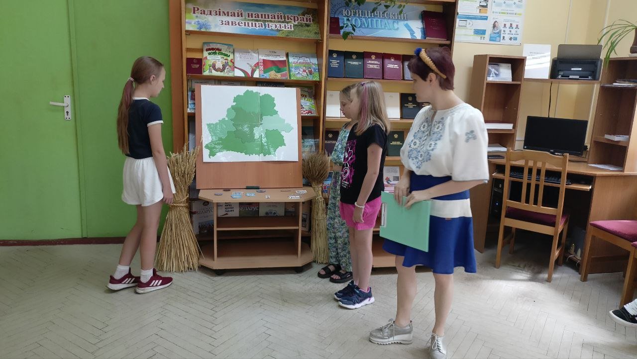 Школьникам напомнили и о главных символах нашей страны. Участники мероприятия объяснили, что символизируют цвета Государственного флага Республики Беларусь и элементы Государственного герба Республики Беларусь. Ответы ребят дополнил сотрудник библиотеки.