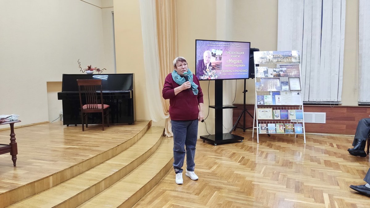28 октября в центральной городской библиотеке имени А.И. Герцена в рамках литературно-художественного салона «Встречи на Замковой» состоялась презентация книги “Мядзел, кветка мядовая” поэта, переводчика, журналиста, члена Союза писателей Беларуси, Союза писателей Союзного государства, Белорусского союза журналистов Тамары Крюченко.