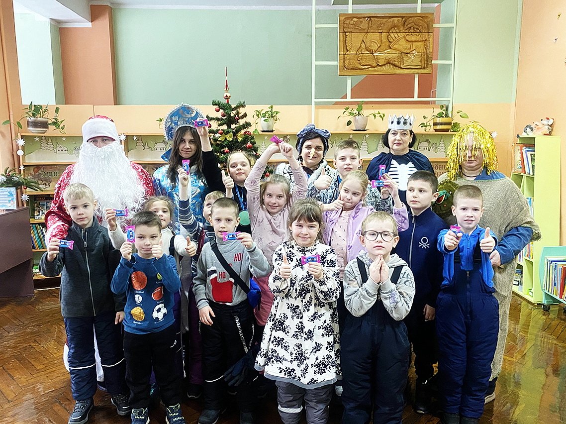 Кульминацией приключения стала «Избушка Бабы Яги», где участников ждали динамичные эстафеты на ловкость. Ребята гоняли воздушные шарики метлами, соревновались в меткости, бросая бумажные снежки в корзины, и искали спрятанные по всей библиотеке бумажные мухоморы. Справившись со всеми заданиями Бабы-Яги, дети освободили Снегурочку и вернули украденные подарки.