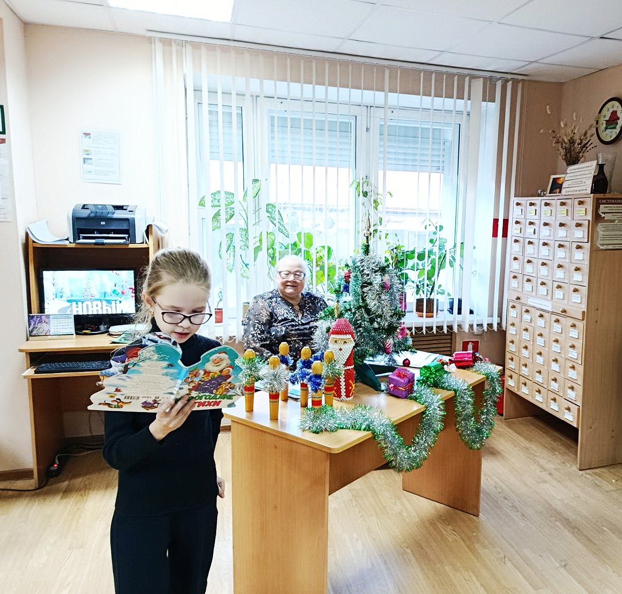Прозвучали стихи о зиме Александра Пушкина, Афанасия Фета и др. Ребята отвечали на вопросы новогодней викторины, отгадывали загадки о зиме, участвовали в конкурсе «Угадай сказочного персонажа». Затем начались подвижные игры: «Новогодний боулинг», «Эстафета с мишурой», «Игры в снежки».