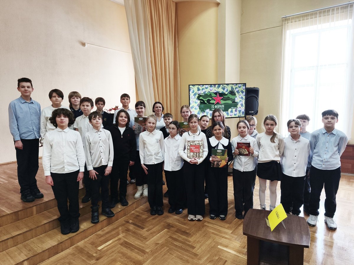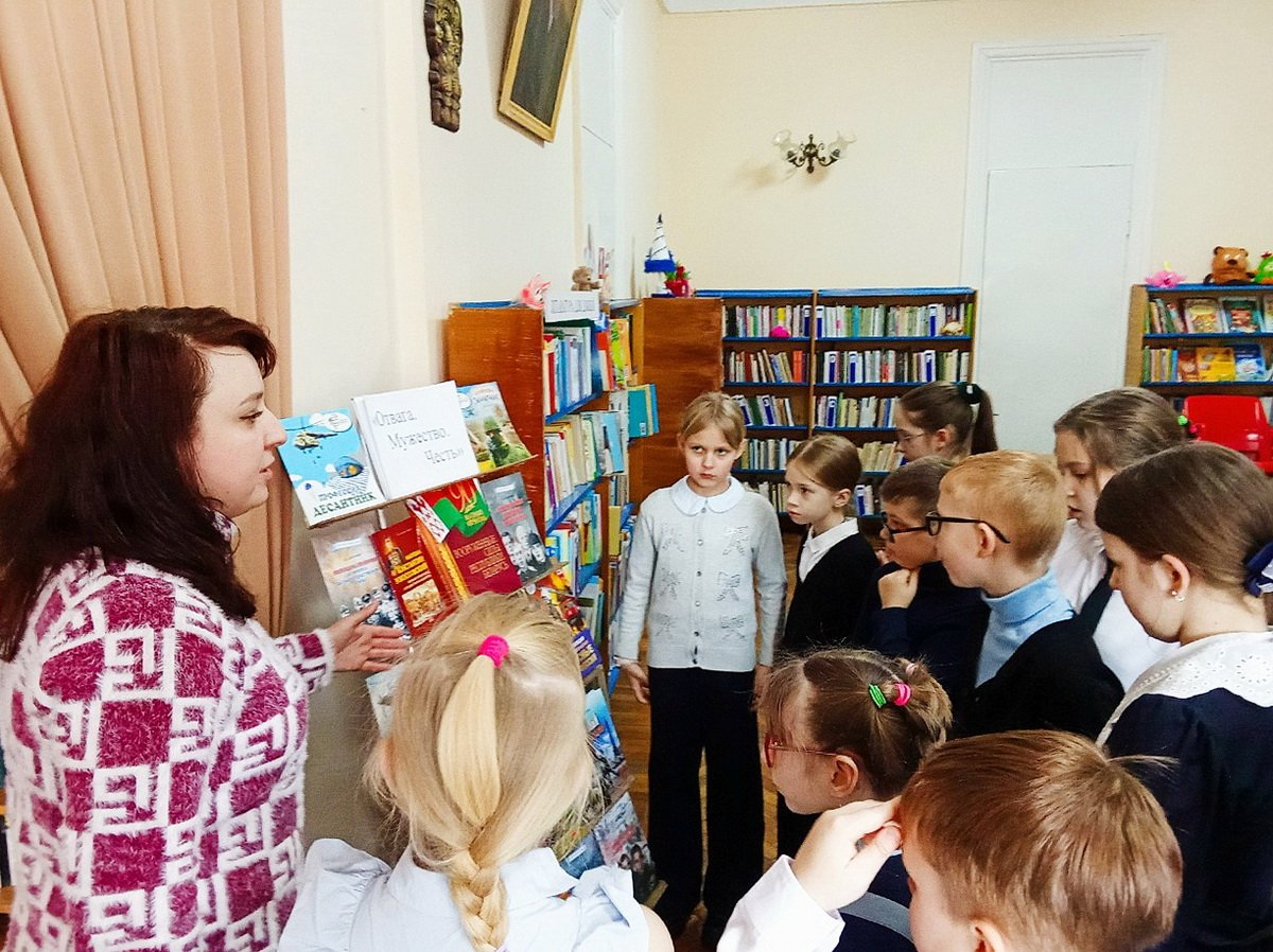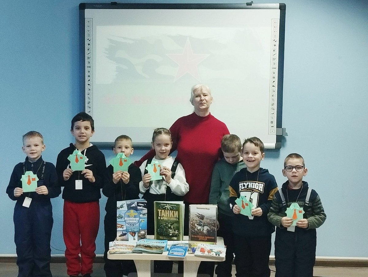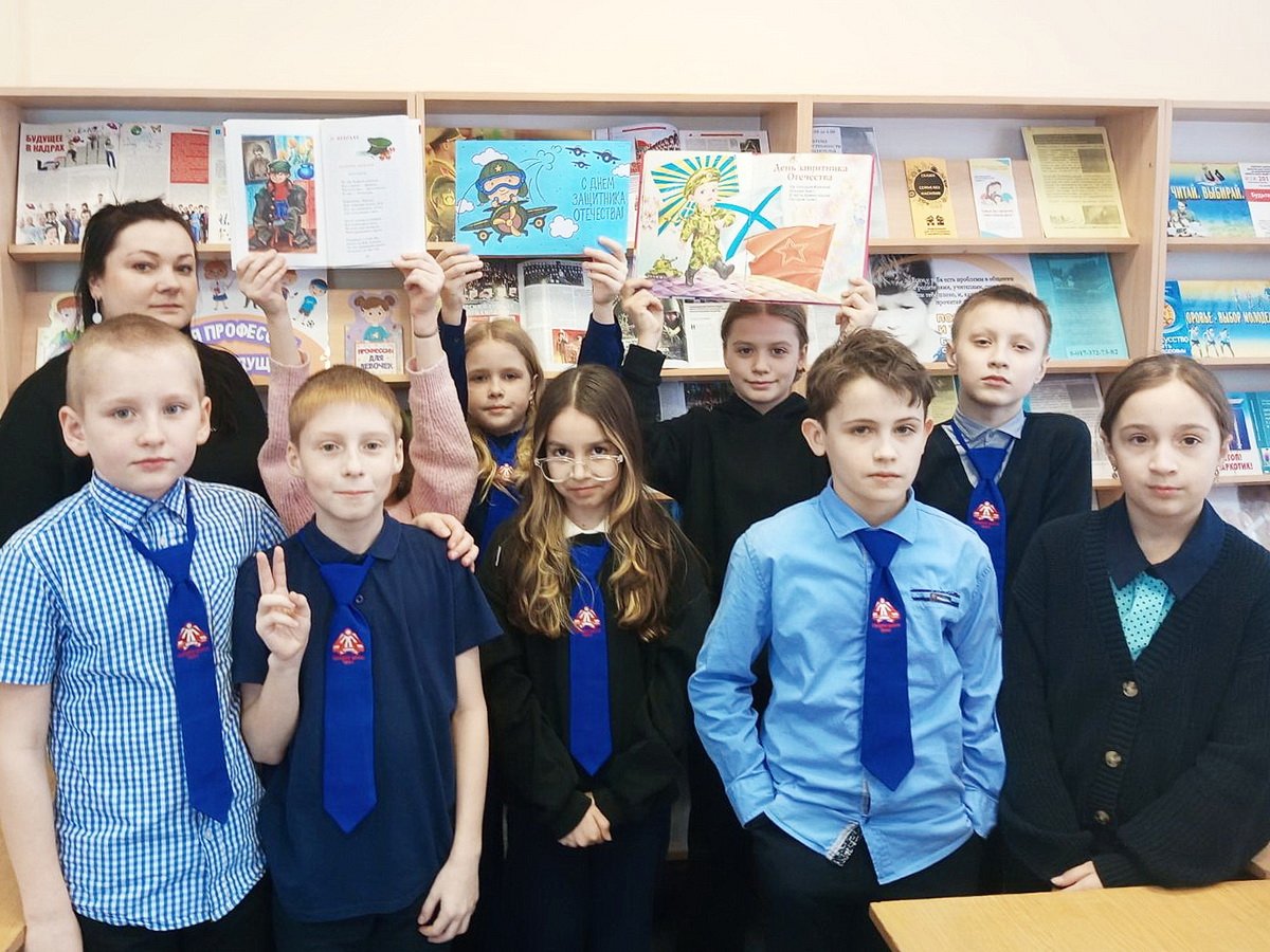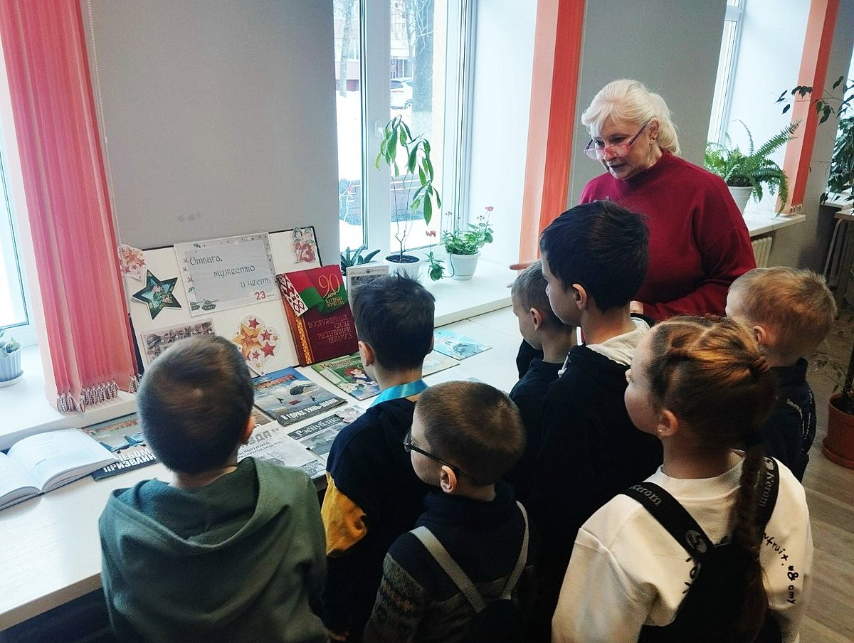 В начале мероприятия ребятам рассказали об истории праздника. Библиотекарь, обращая внимание на книжную выставку «Отвага. Мужество. Честь», ещё раз напомнила школьникам о подвигах наших дедов и прадедов, отважных защитников Родины. Ученики вспомнили военные профессии и узнали о том, что служить Отечеству – это ответственная и почётная миссия.