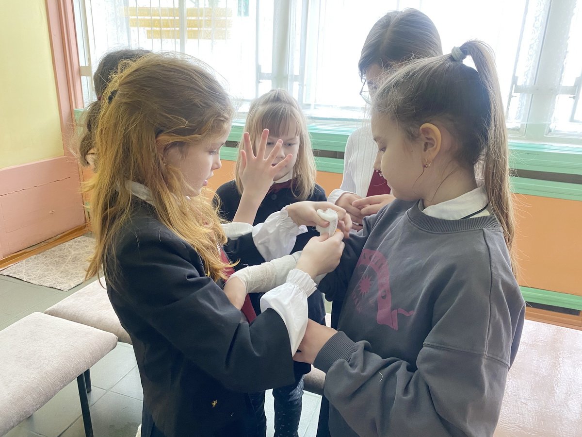 На станции «Военный госпиталь» юные защитники проходили своеобразную военно-врачебную комиссию. Ребята демонстрировали остроту зрения, выполняя задания на внимательность и точность. Затем их ждали логические задачи и головоломки, направленные на развитие памяти и умения быстро принимать решения. Особое внимание было уделено практическим навыкам: участники учились оказывать первую помощь при ранении – неотъемлемой части подготовки любого солдата.