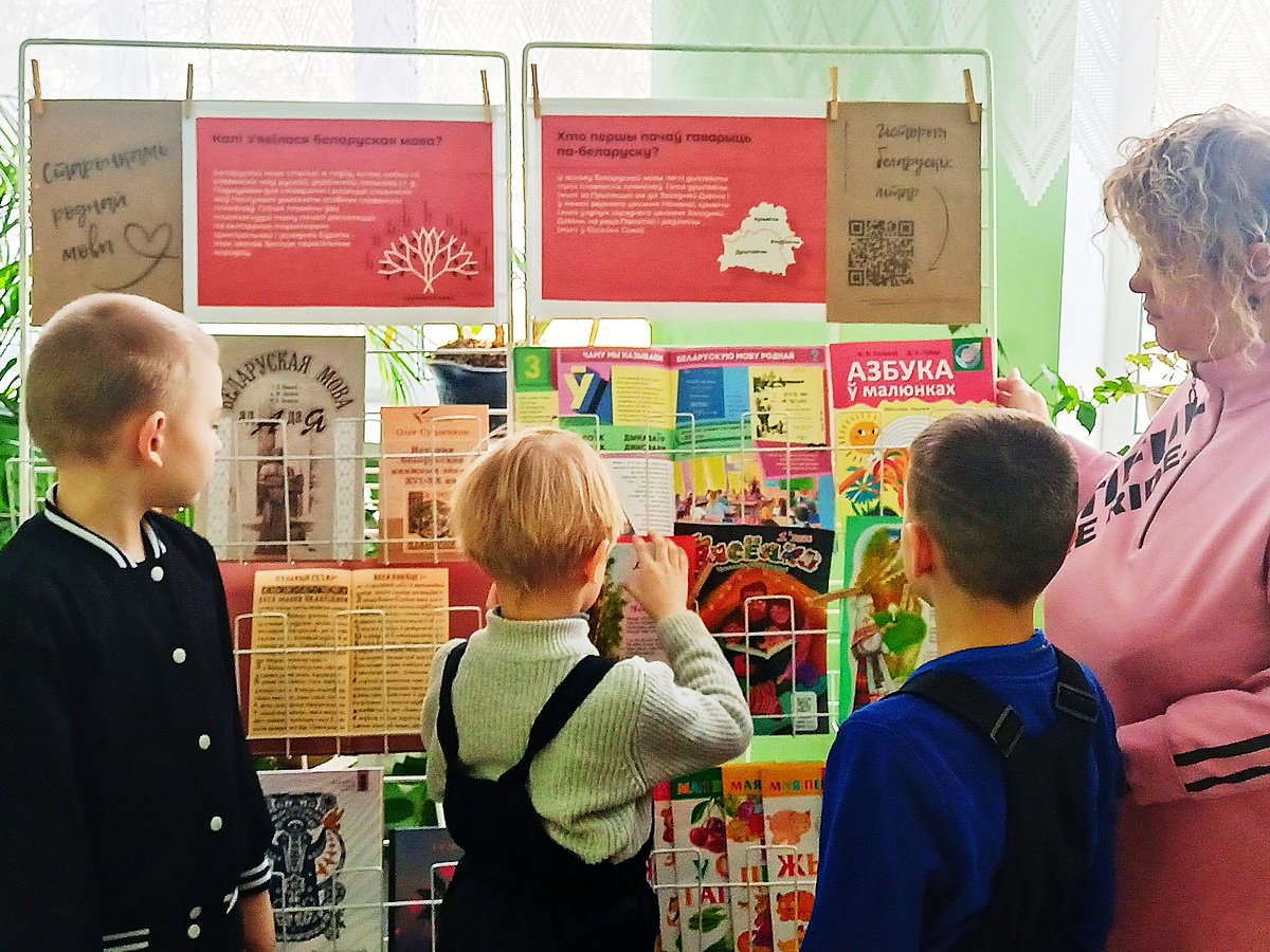 С учащимися также был проведен обзор интерактивной выставки “Старонкамі роднай мовы”. Детям было предложено познакомиться с интересными книжным новинками белорусских издательств: серией “Мая першая кніга”, которая знакомит детей с белорусскими названиями окружающей среды, правилами поведения, и серией книг “Таямніцы беларускай мовы”, обучающей правилам белорусского языка.