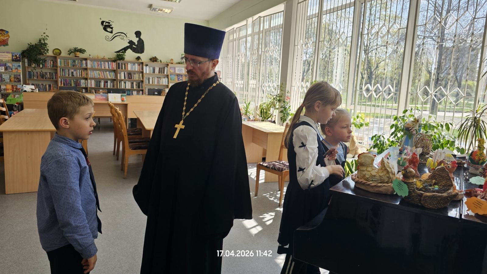 Священнослужитель особое внимание уделил истории и значению праздника Пасхи, библейскому событию Воскресения Иисуса Христа. Школьники узнали об истории появления пасхального яйца, а также обсудили современные и древние традиции празднования Пасхи.