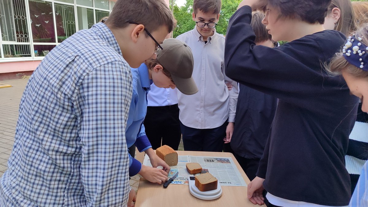 На станции «Собери посылку на фронт» ребята выбирали и упаковывали предметы, которые были необходимы солдату, взвешивали 125 грамм блокадного хлеба, затем угостились этим хлебом и сухариками.