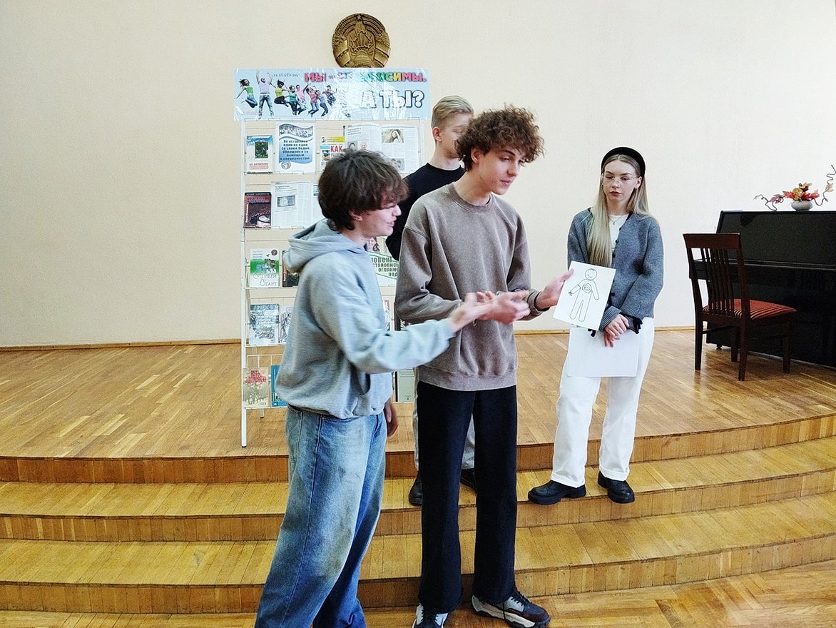 Учащиеся сыграли в игру «Спорные утверждения», где должны были либо подтвердить, либо опровергнуть предложенные утверждения, а также нарисовали образ наркомана, как они его видят.
