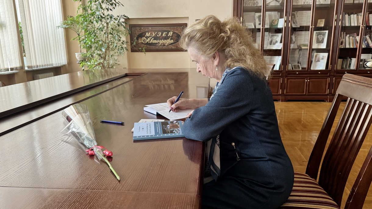 Также Ольга Алексеевна подарила библиотеке книги, написанные в соавторстве с Зоей Владимировной Шведовой "Вобраз чалавека ў беларускай фразеалогіі" и "Слоўнік гастранамічных фразеалагізмаў беларускай мовы" с дарственной надписью и автографом.